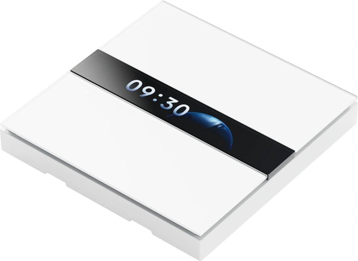Умный выключатель V1 — 4-клавишный, 2-канальный выключатель с нейтралью, оснащенный 2-мя физическими, 2-мя логическими кнопками и 2,08-дюймовым LCD-экраном. Поддерживает настройку текстов, соответствующих определенным устройствам - помогает легко понять, какое устройство контролирует каждая кнопка.