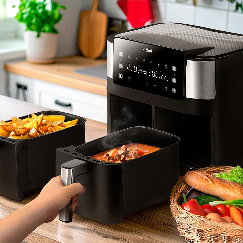 2 нагревателя по 1400Вт, 2 чаши по 3.8 л