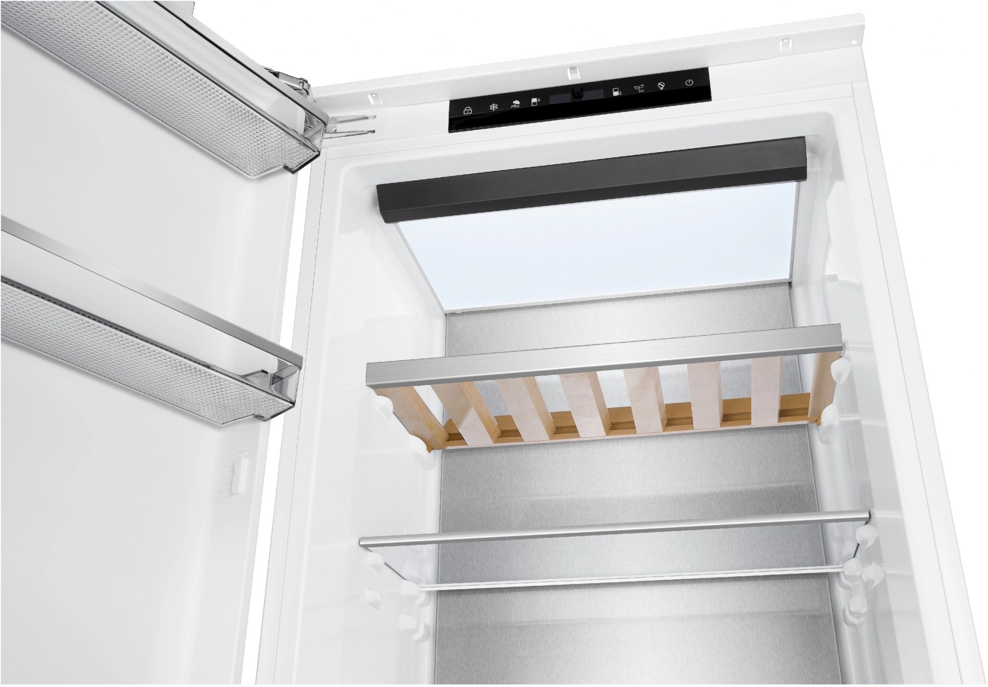 Ящик зоны свежести с меxанической регулировкой влажности раздельная регулировка температуры для верxней и нижней зон xолодильника, деревянная полка для вина