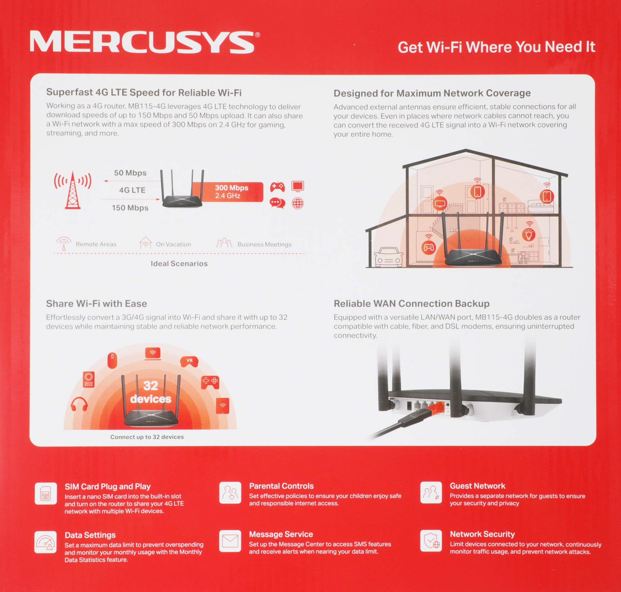Роутер, адаптер питания, кабель Ethernet RJ45, краткое руководство по установке.