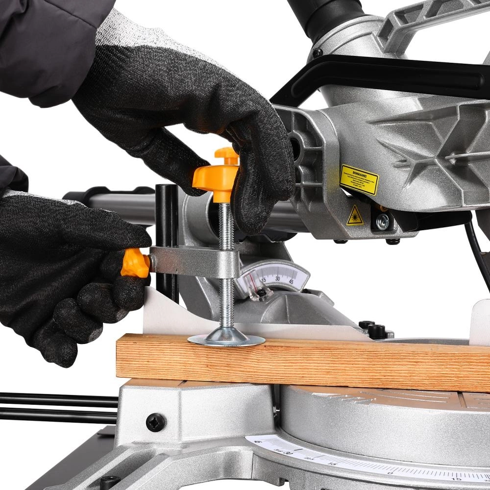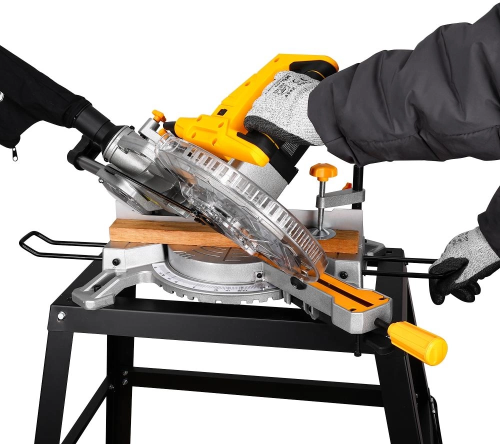 боковые упоры, винтовой зажим, пильный диск, пылесборник, струбцина