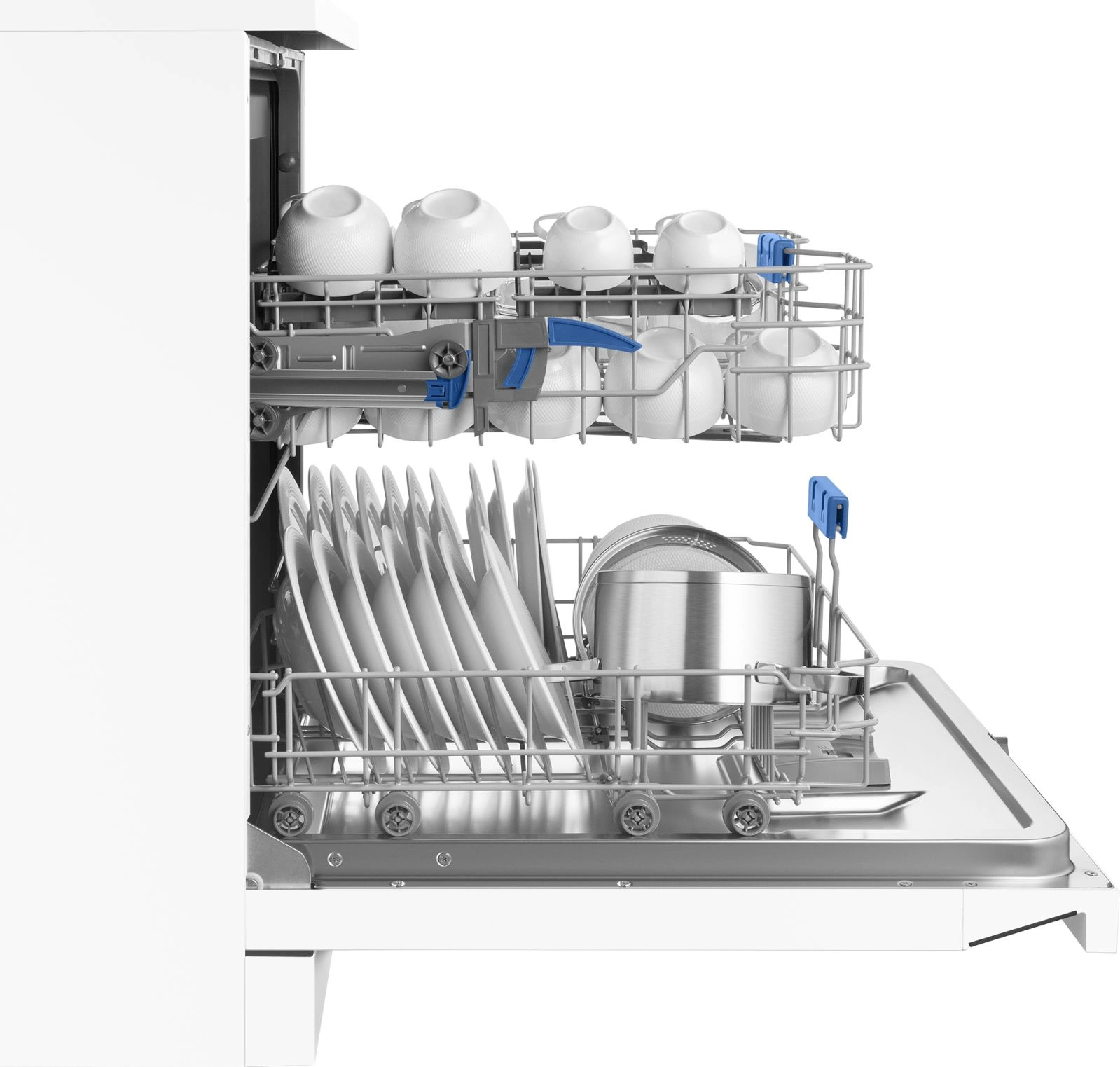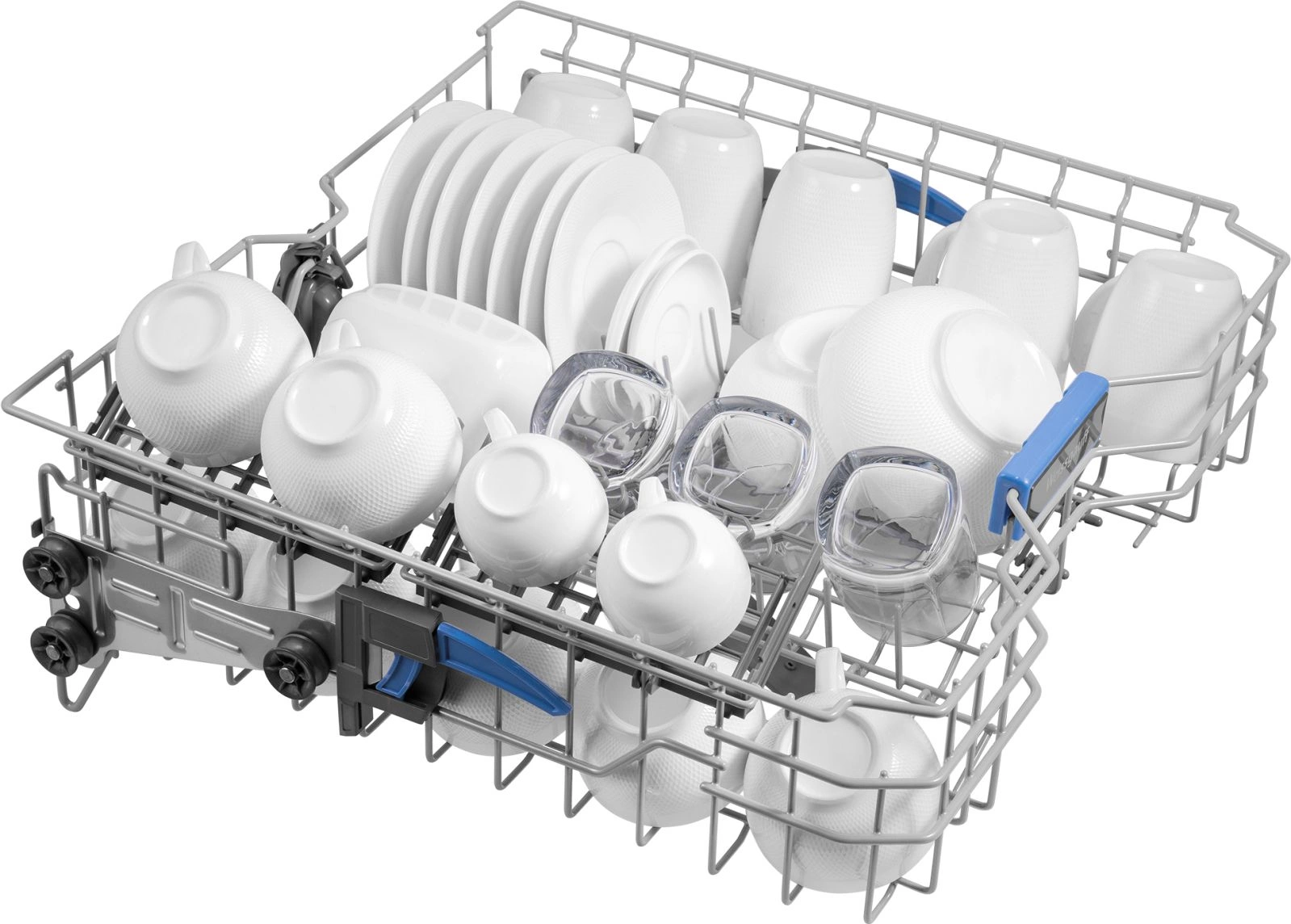 корзина для столовых приборов, полки для кружек, разбрызгиватель над верхней корзиной, регулируемая по высоте корзина для посуды