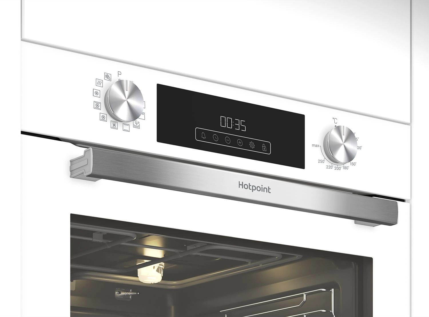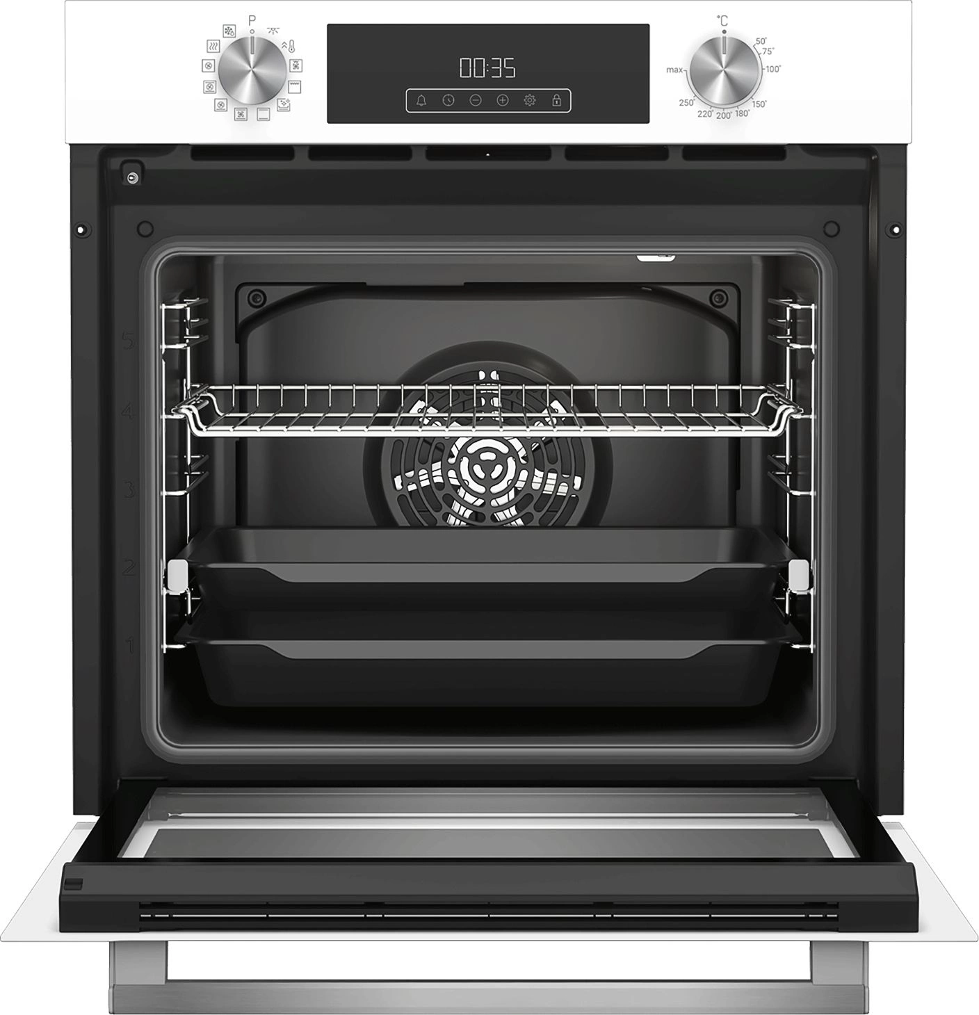 вентилятор охлаждения, дисплей, полностью стеклянная внутренняя поверхность дверцы духовки, телескопические направляющие