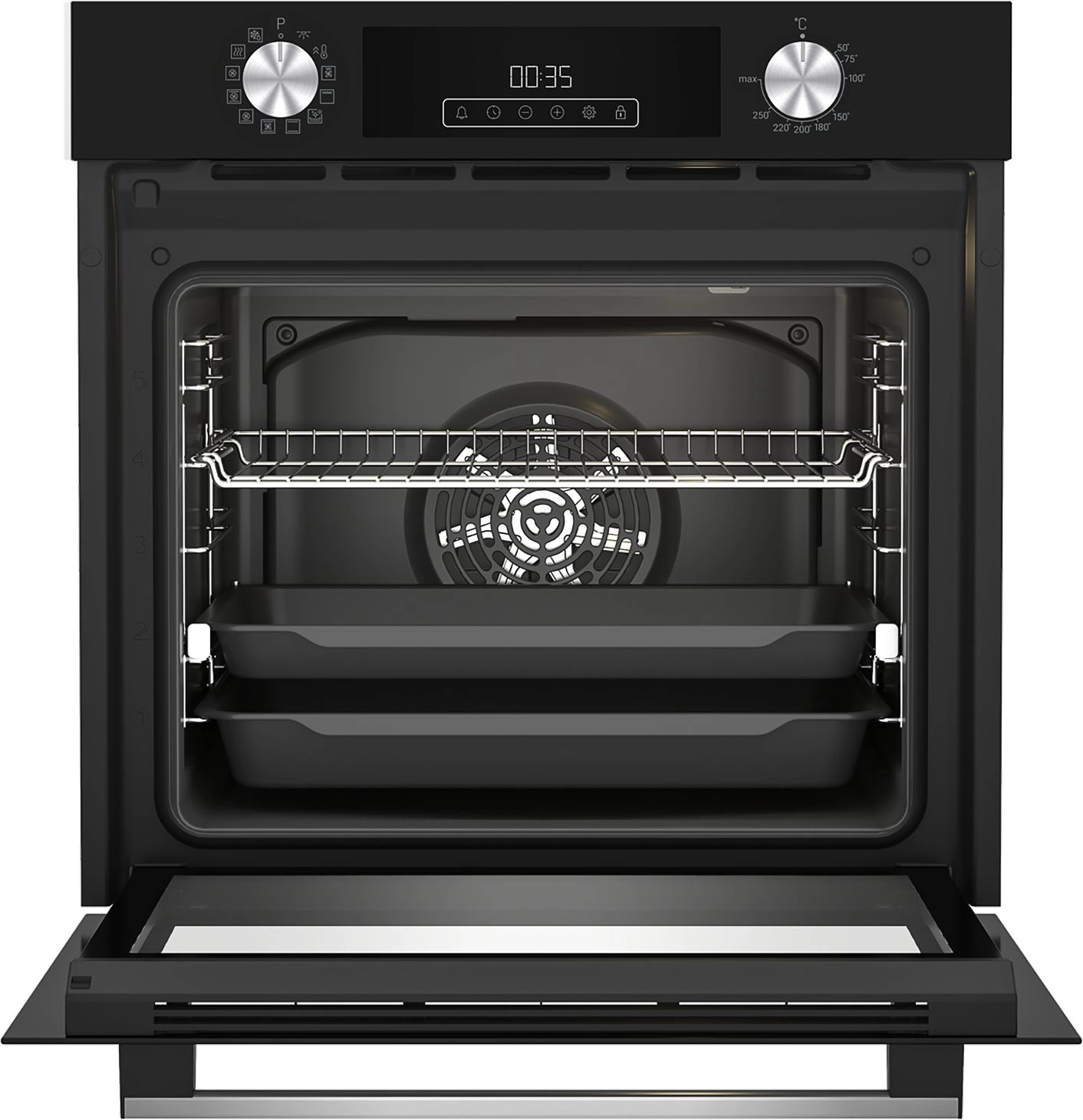 вентилятор охлаждения, дисплей, полностью стеклянная внутренняя поверхность дверцы духовки, телескопические направляющие