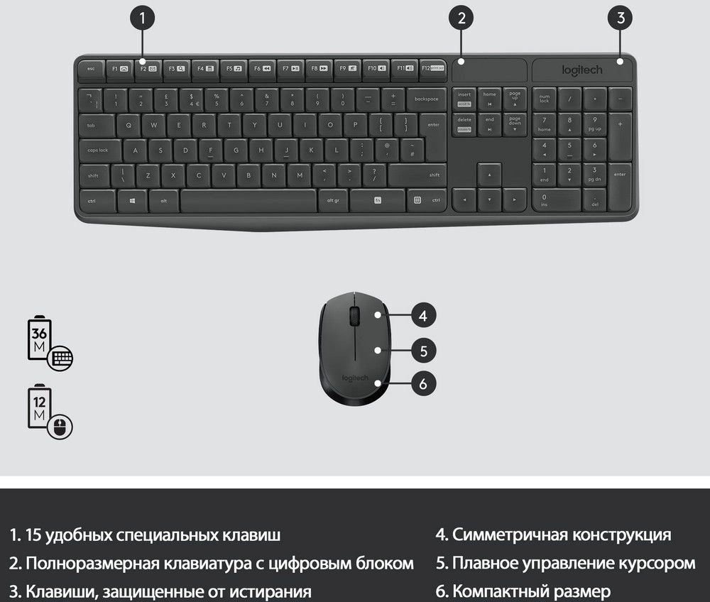 клав:серый мышь:серый/черный USB беспроводная Mult...