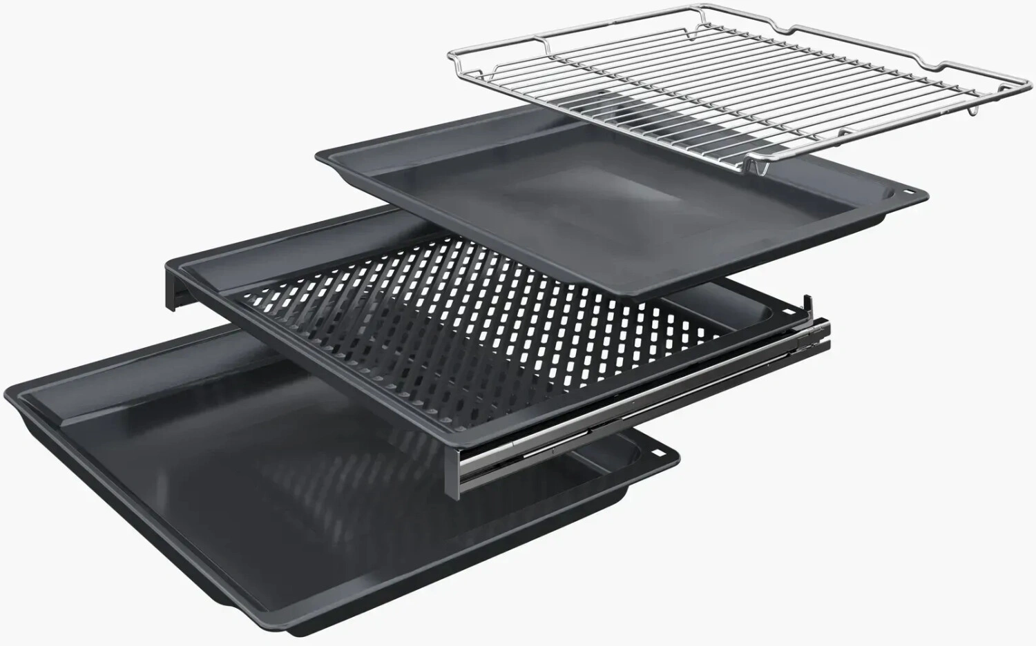 вентилятор охлаждения, дисплей, полностью стеклянная внутренняя поверхность дверцы духовки, телескопические направляющие