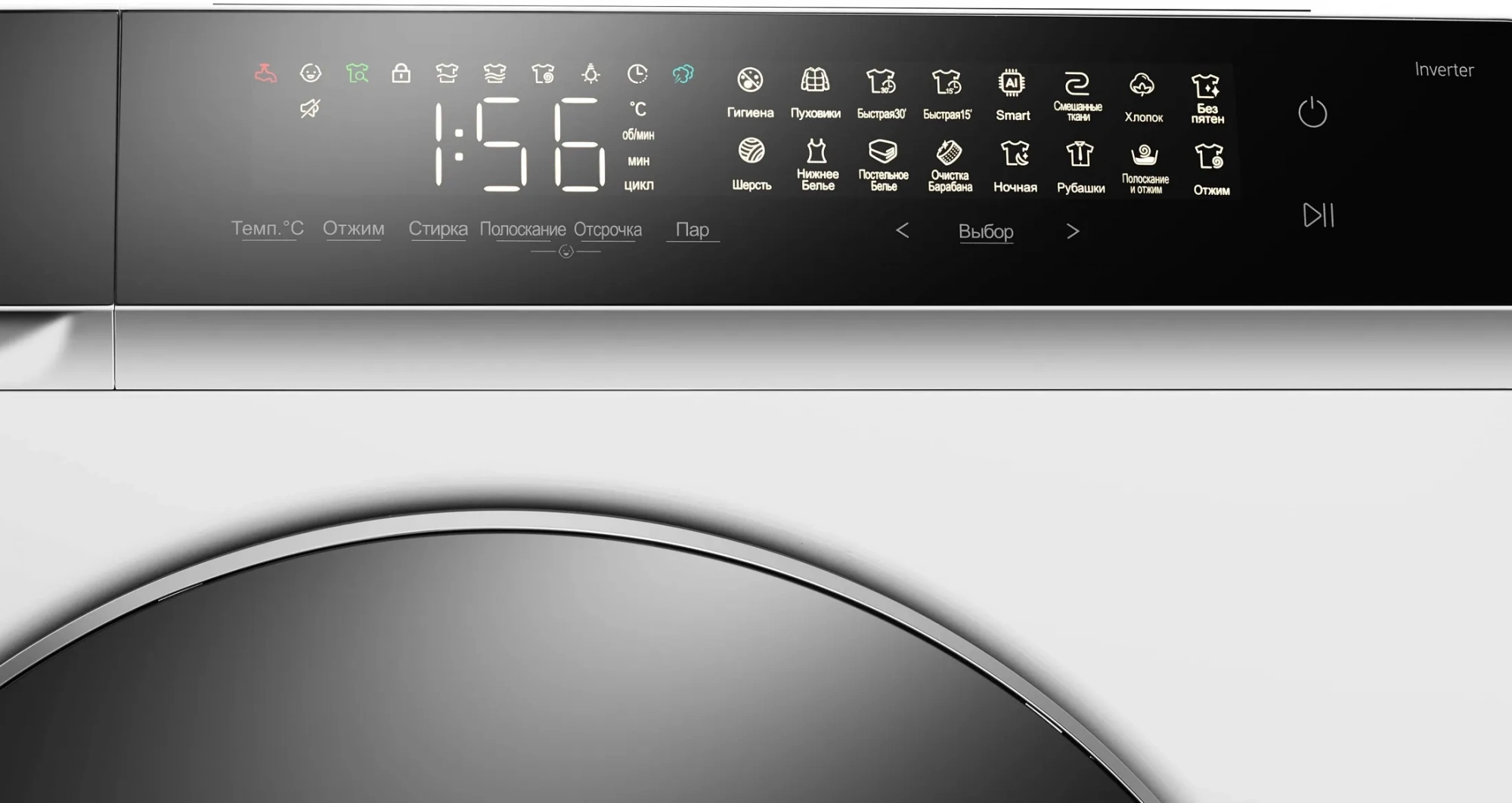 быстрая стирка, деликатная стирка, самоочистка, ускоренная стирка