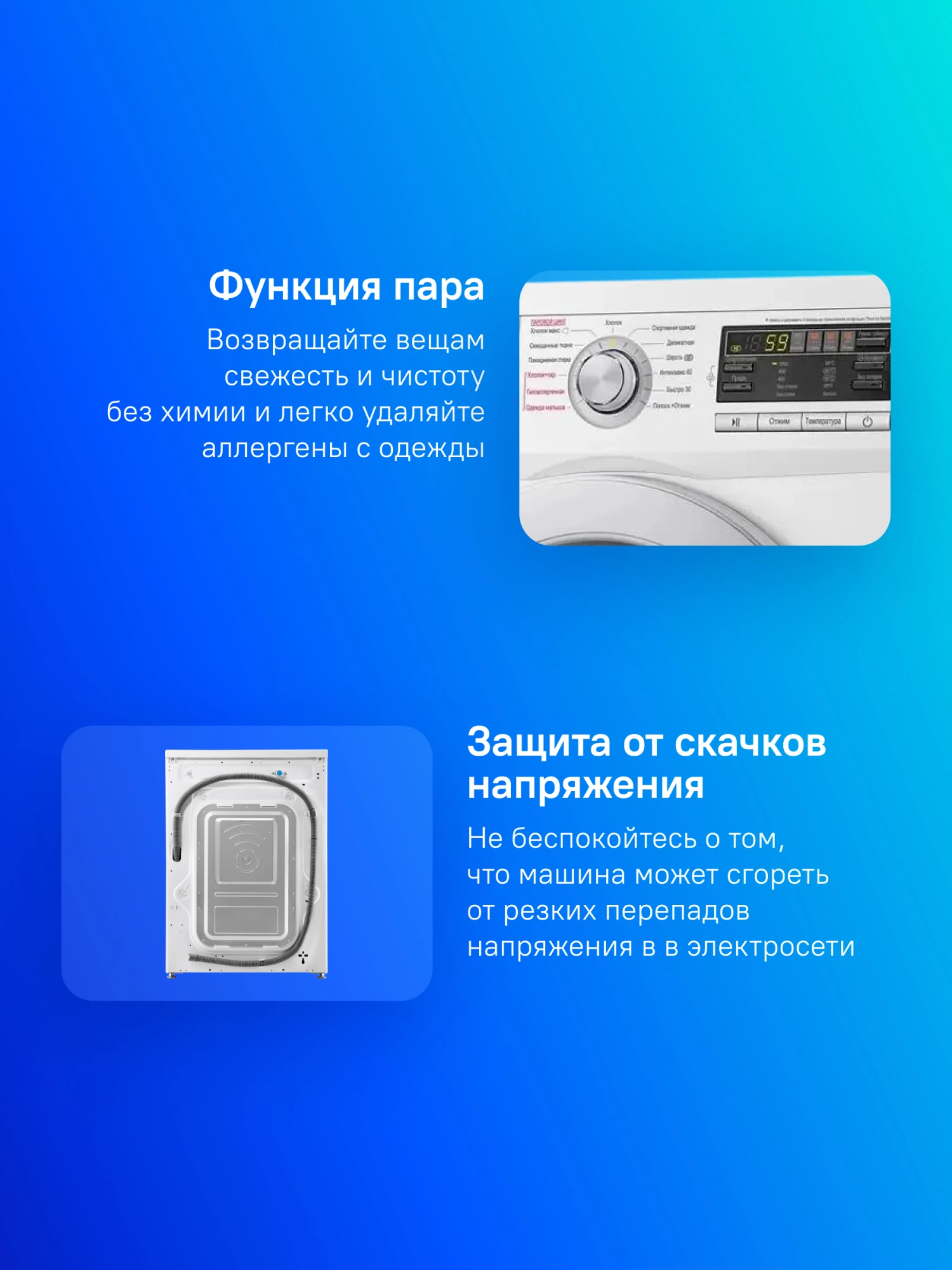 Детектор загрузки. Интеллектуальная система стирки. Автоперезапуск. Функция пара SpaSteam. 6 движений заботы. Мобильная диагностика Smart Diagnosis.