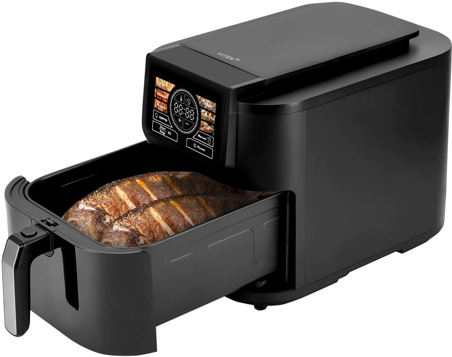 Сенсор автоматического определения количества продуктов, вы загружаете, аэрогриль определяет и подстраивает время и температуру готовки в зависимости от количества. Удлиненная форма, для сохранения большого объема корзины при компактном размещении