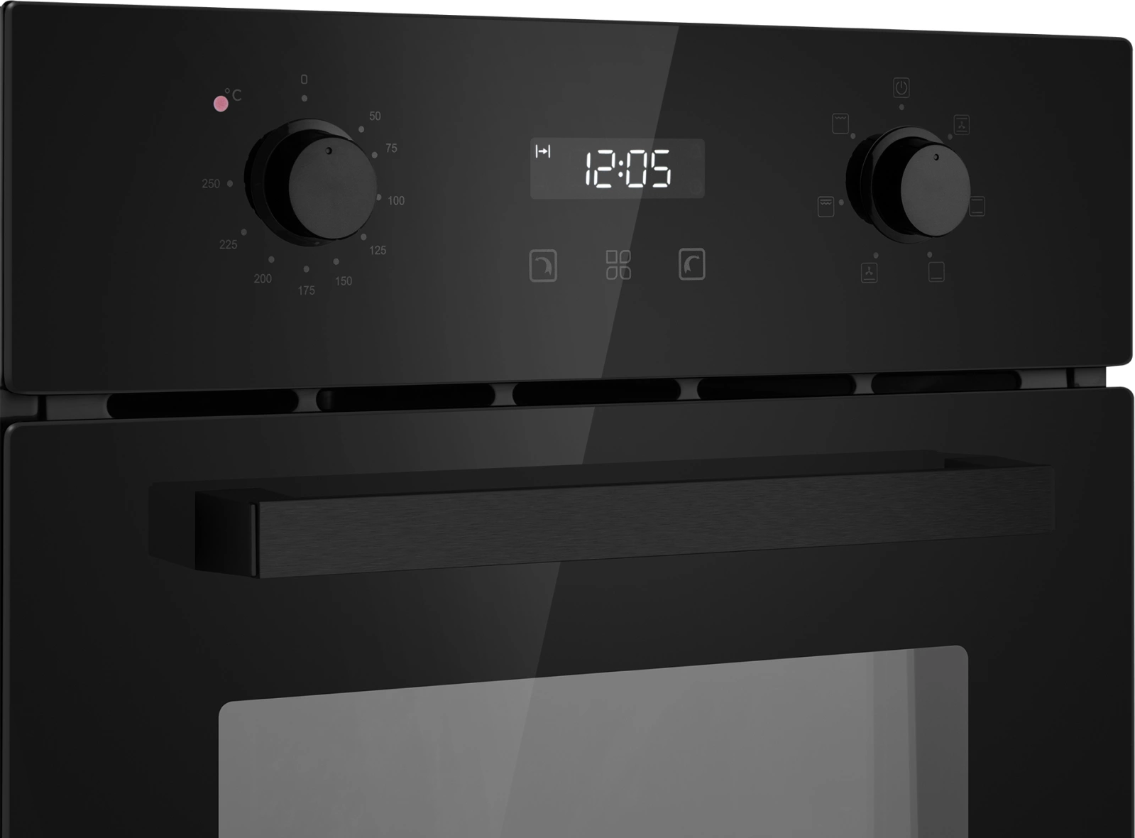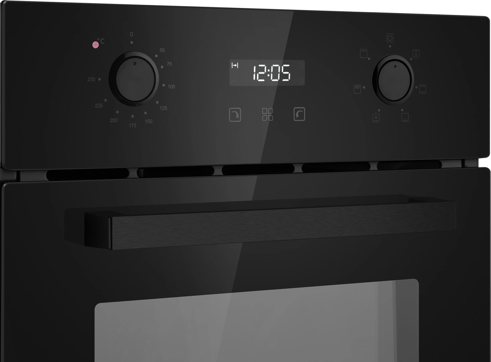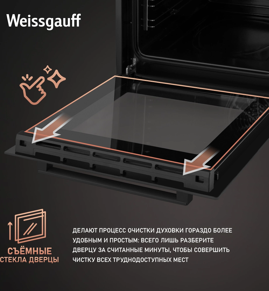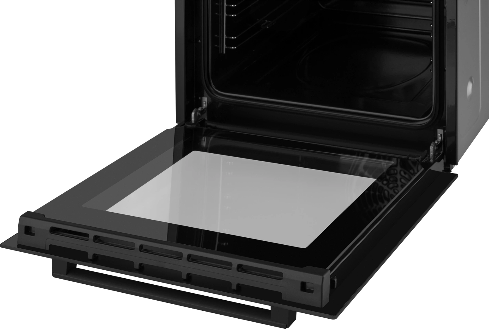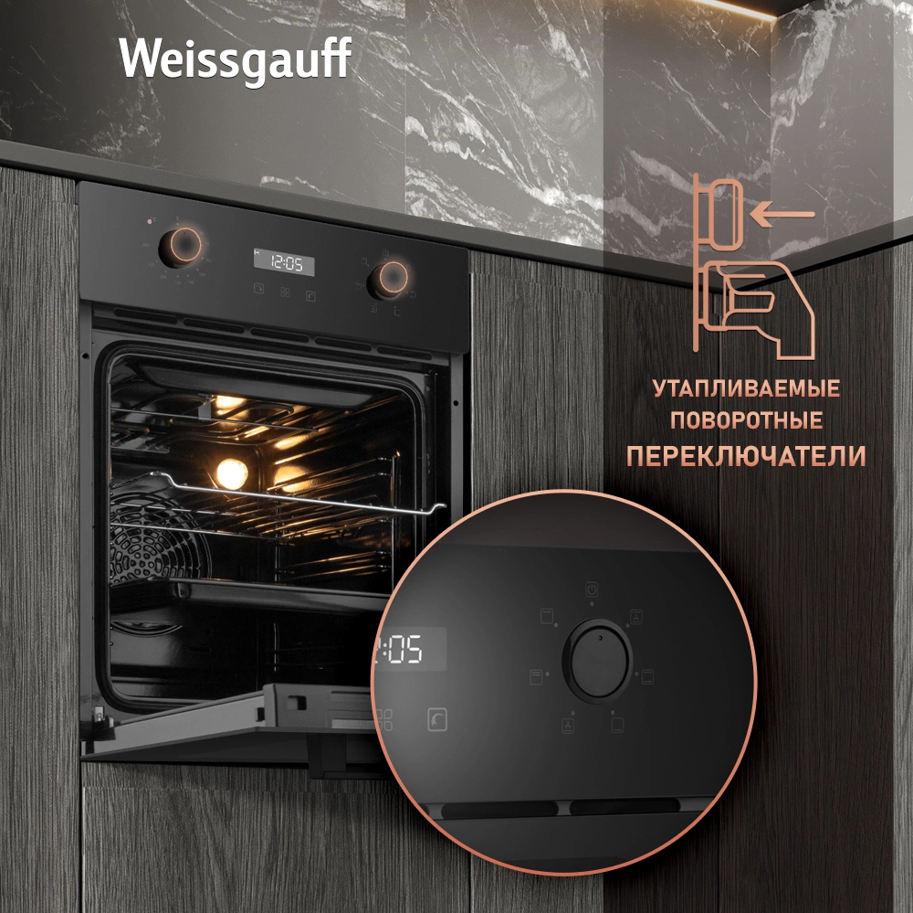 дисплей, полностью стеклянная внутренняя поверхность дверцы духовки, утапливаемые переключатели
