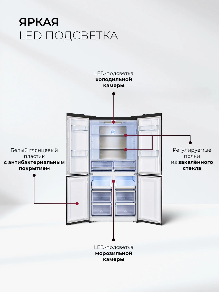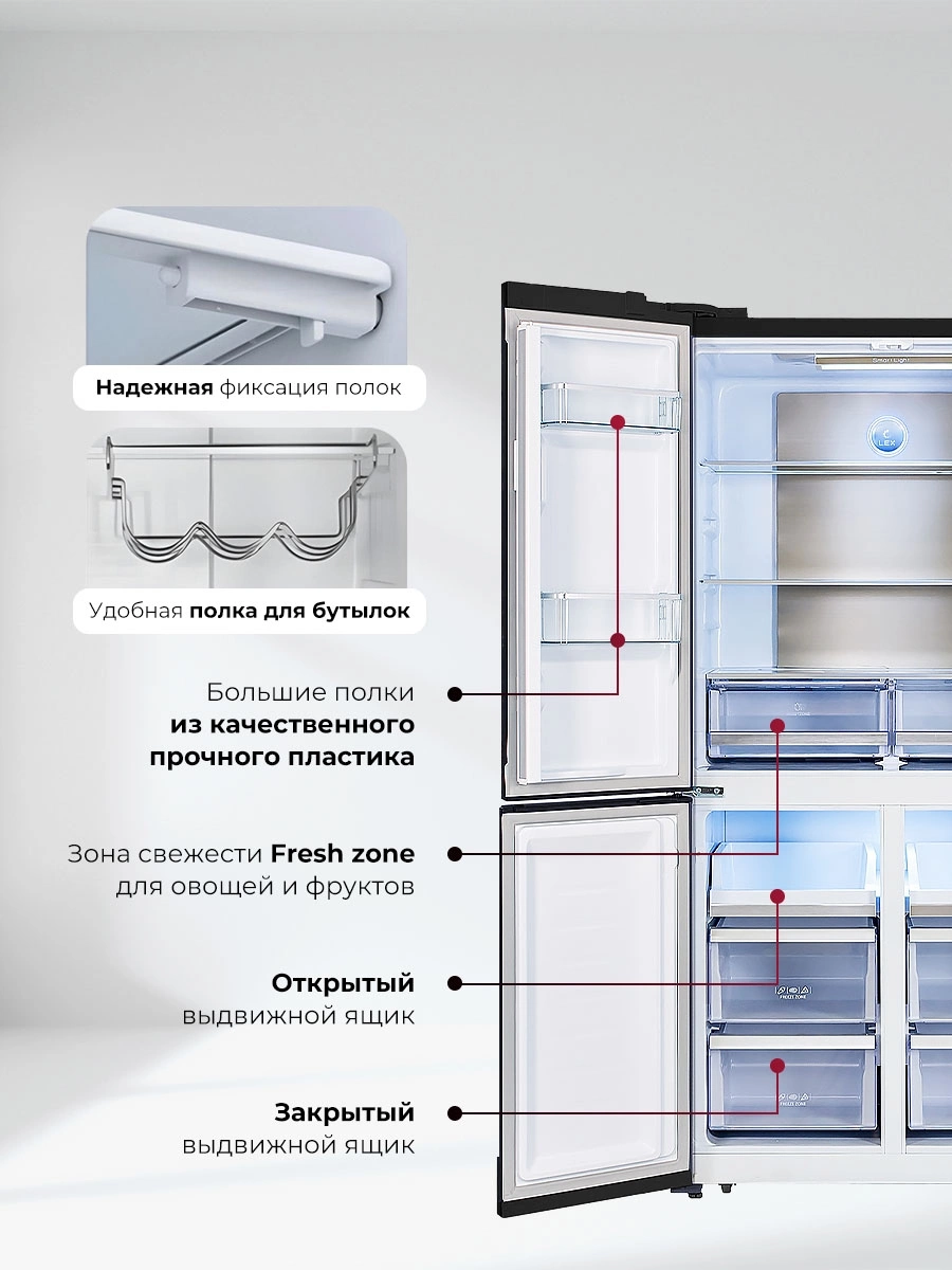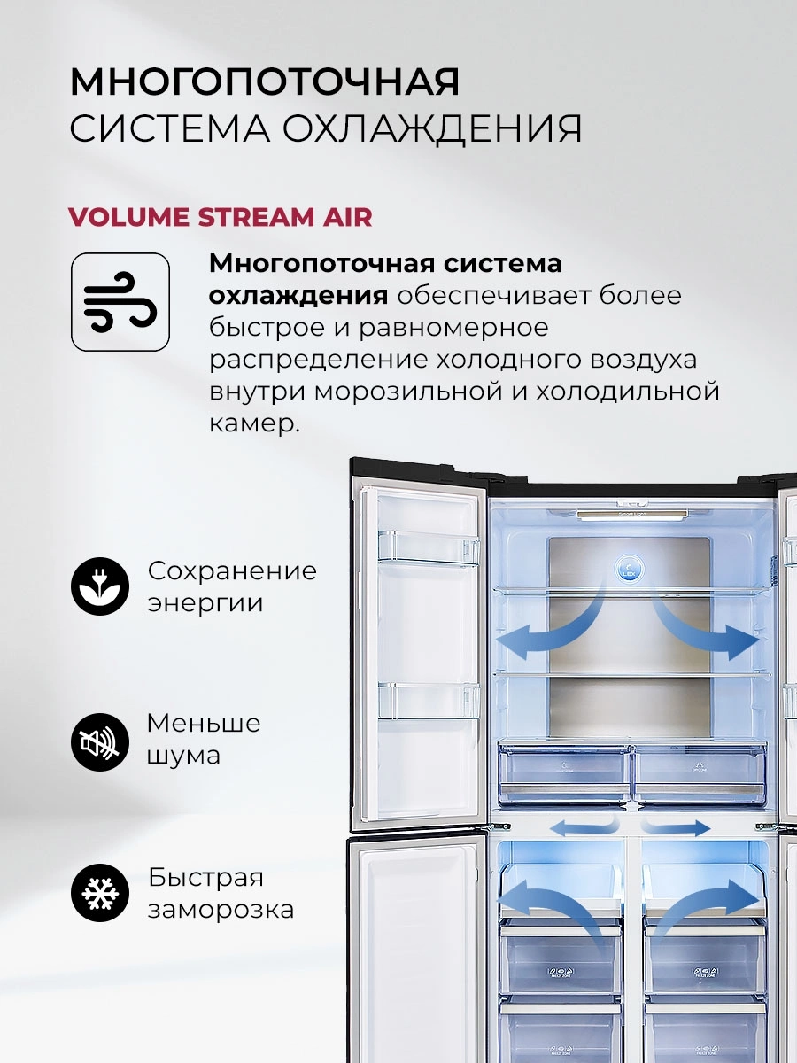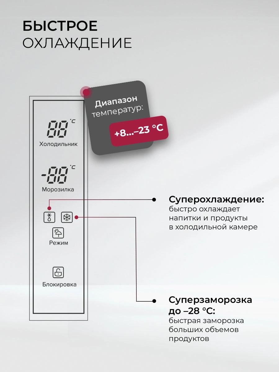 защита от детей, режим отпуск, система многопоточного охлаждения, суперзаморозка, суперохлаждение