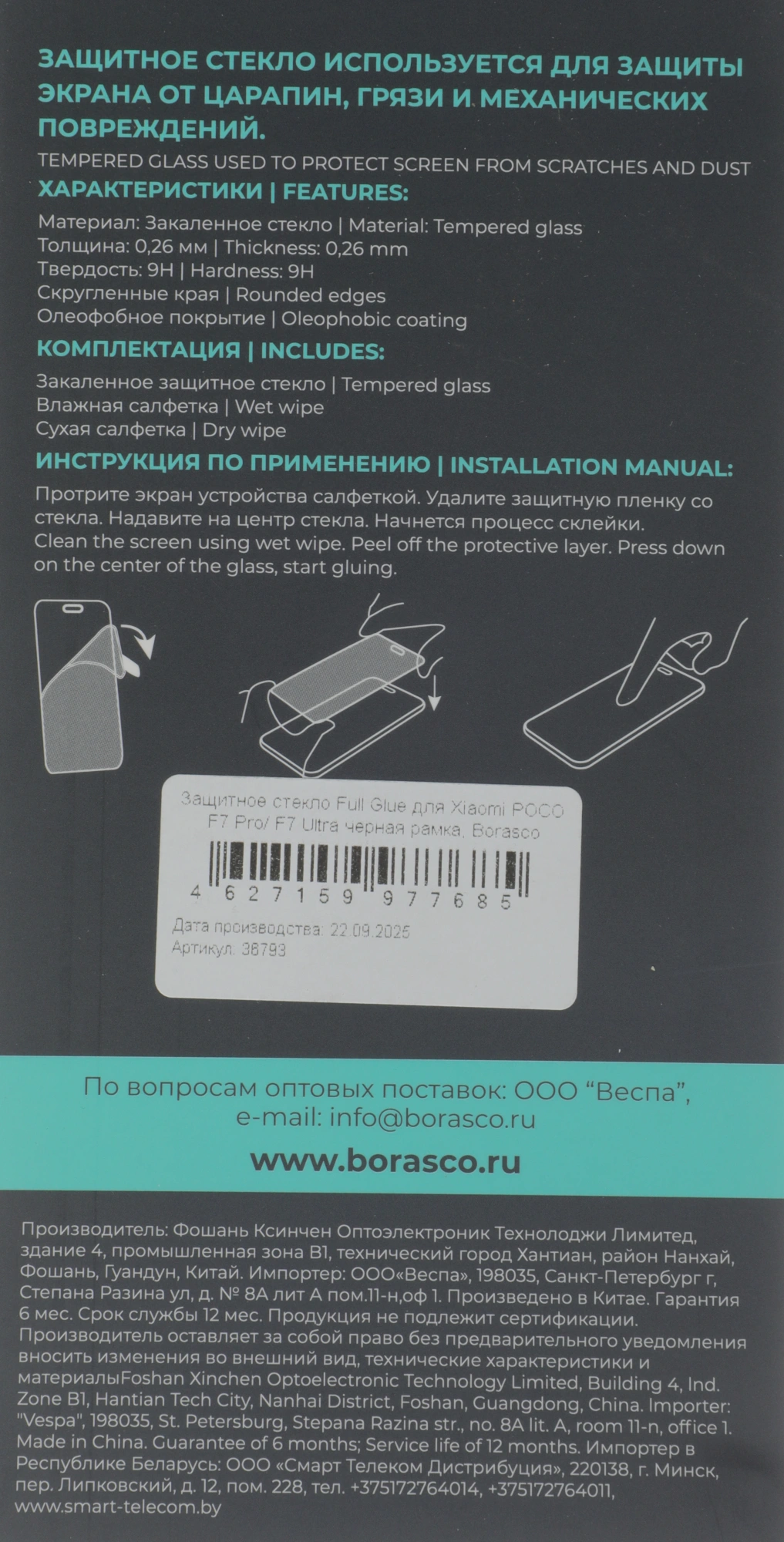 материал: закалённое стекло, твёрдость 5H, скруглённые края, черная рамка