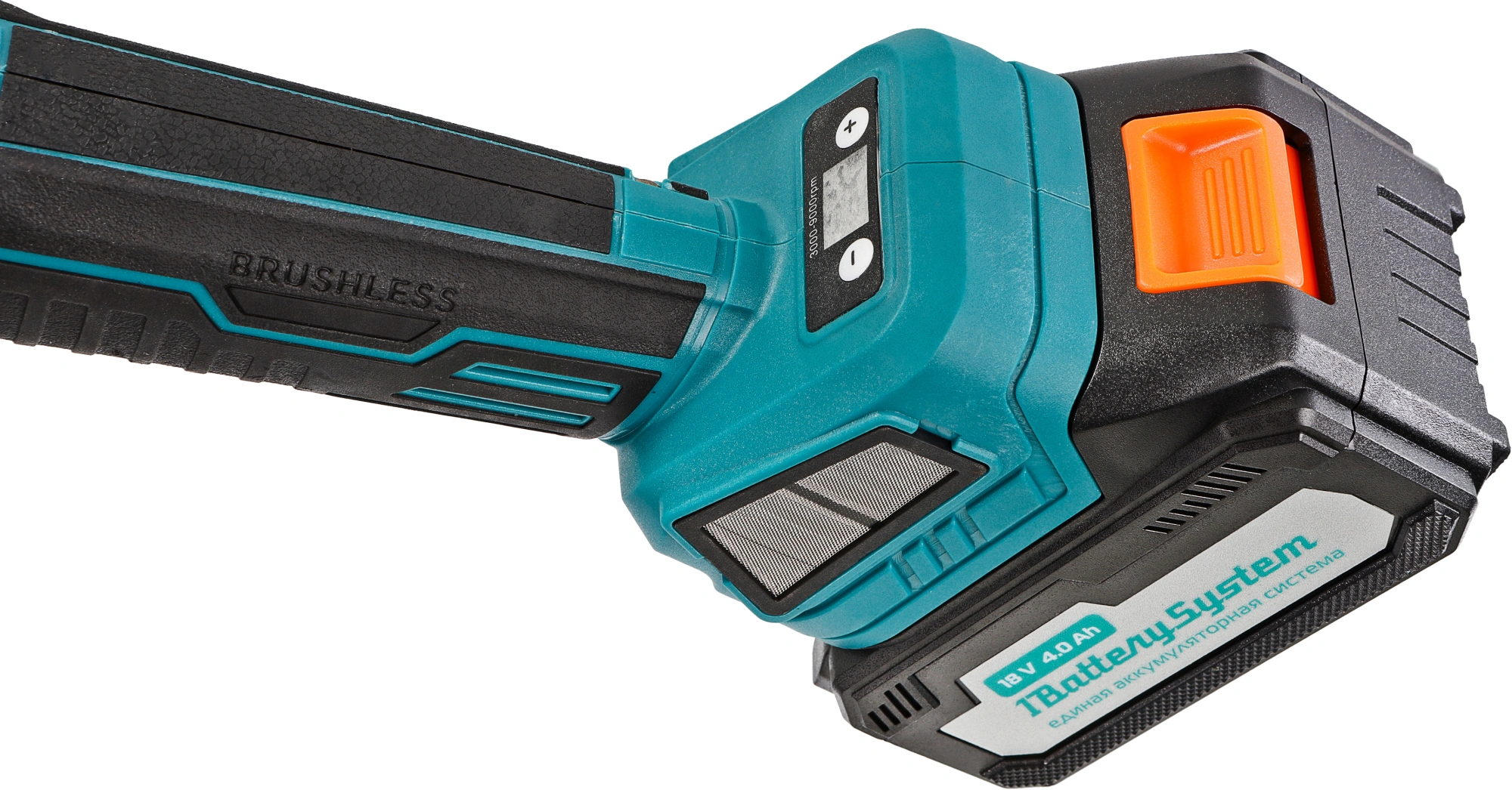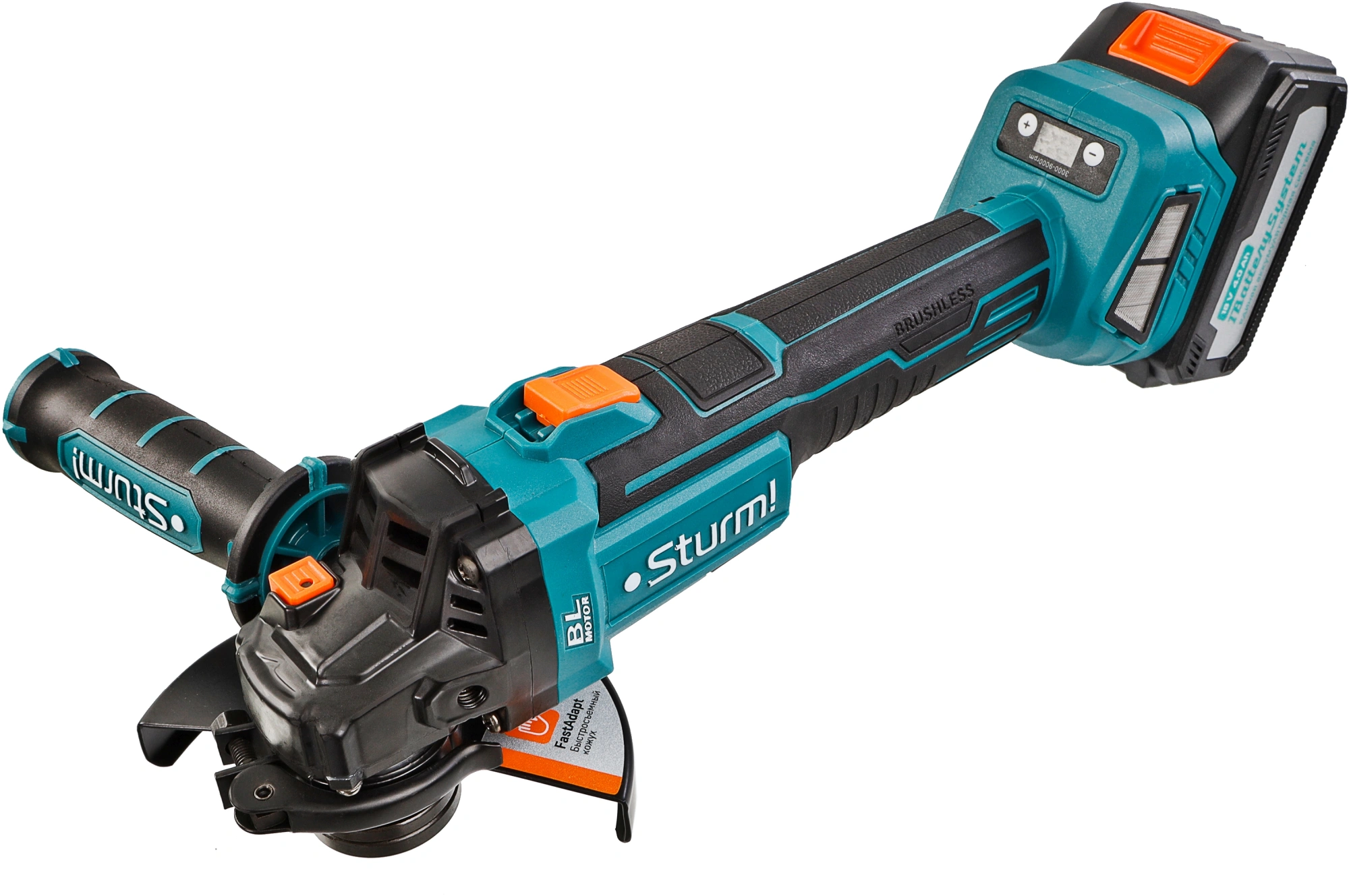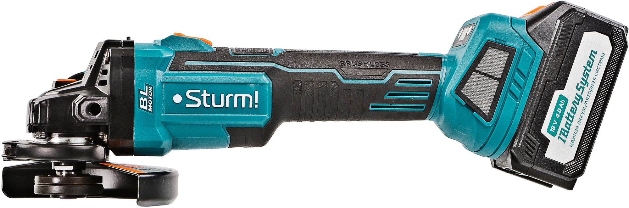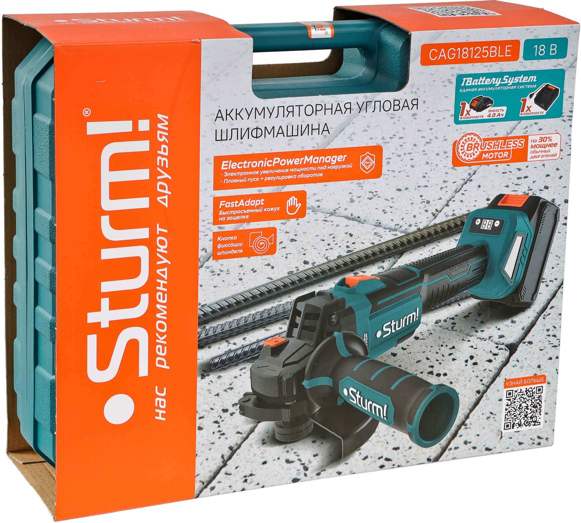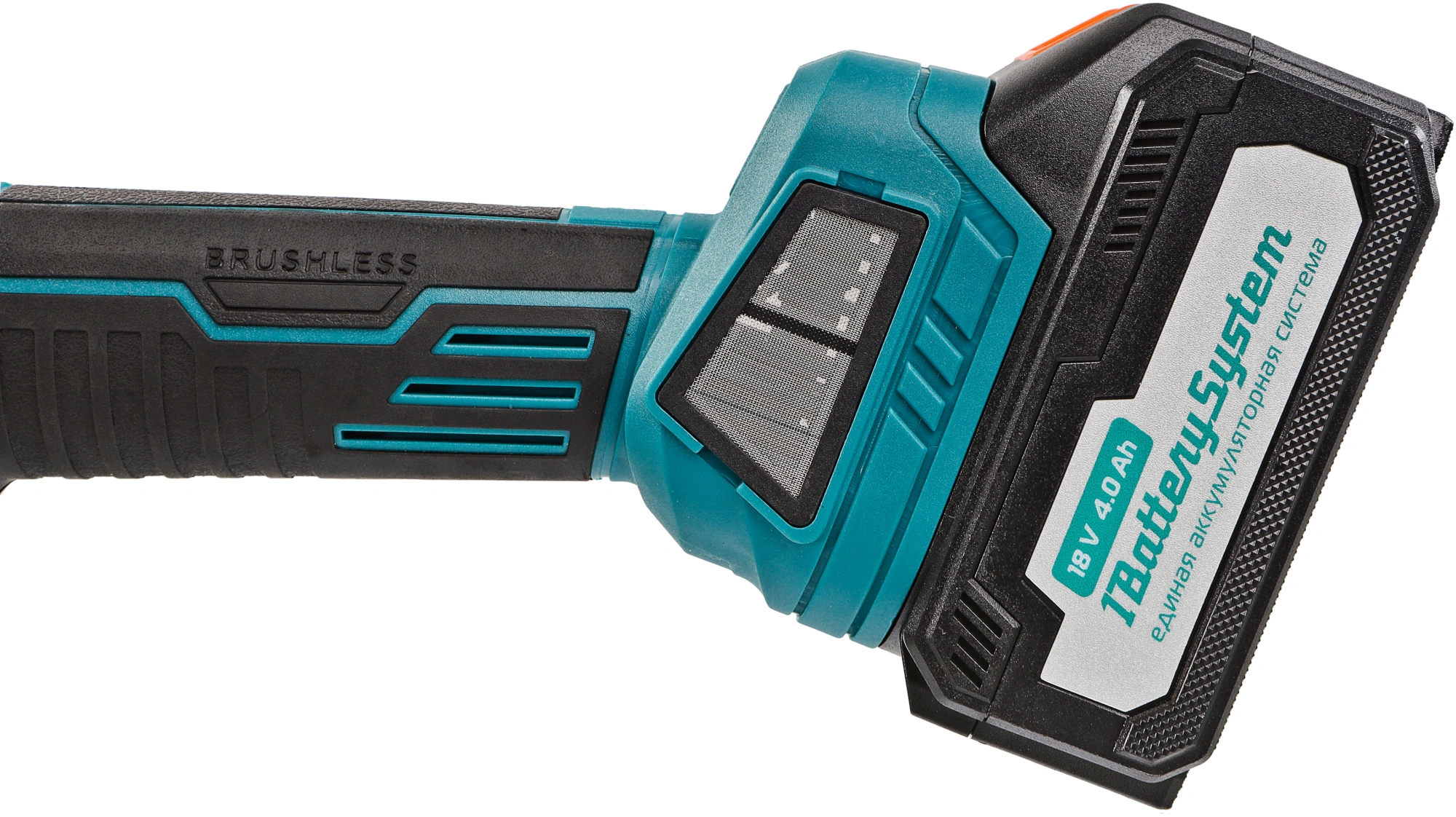 Угловая шлифмашина, зарядное устройство, аккумуляторная батарея, защитный кожух, боковая рукоятка, фланцевый ключ, винт с гайкой.