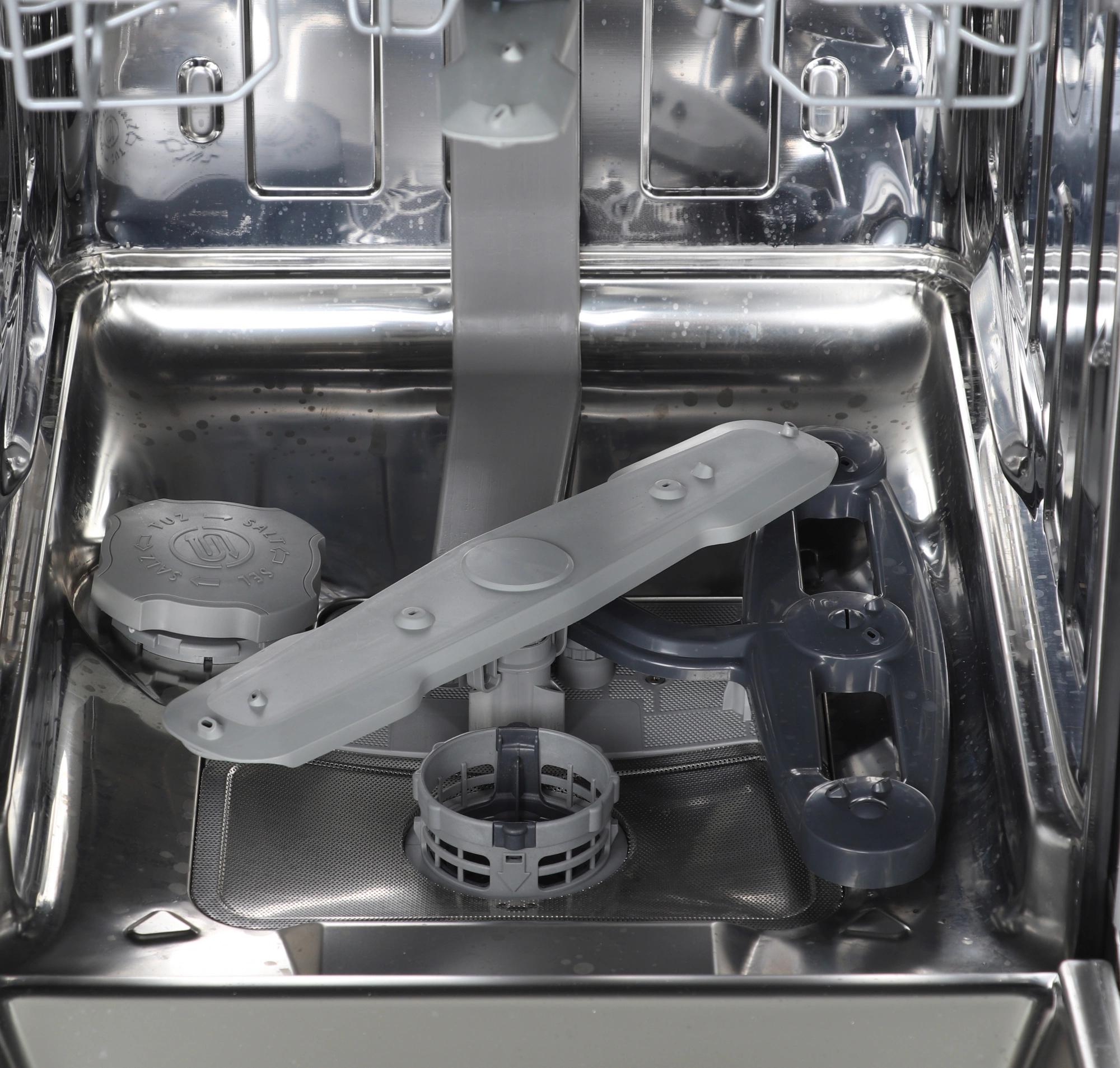 корзина для столовых приборов, освещение, полки для кружек, разбрызгиватель над верхней корзиной, регулируемая по высоте корзина для посуды, складные держатели тарелок