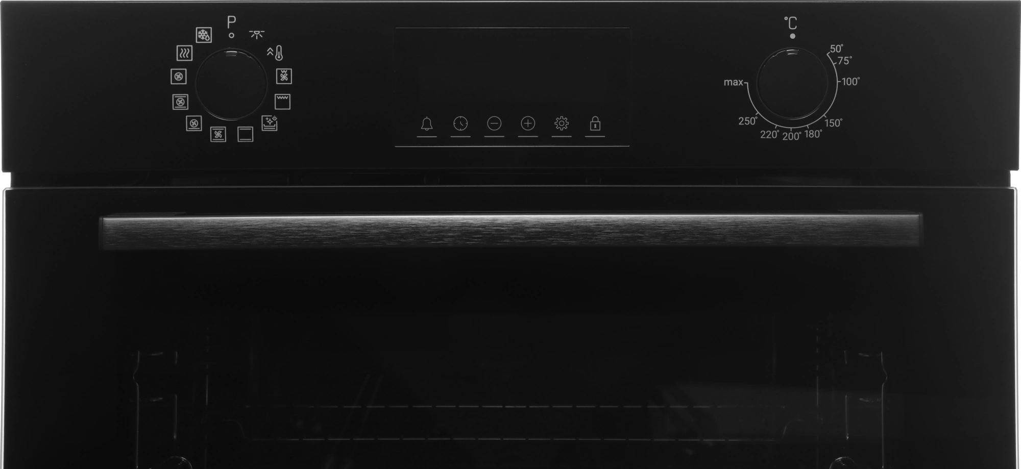 вентилятор охлаждения, дисплей, полностью стеклянная внутренняя поверхность дверцы духовки, утапливаемые переключатели