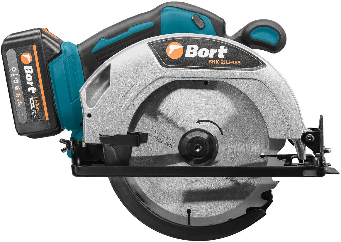Циркулярная пила, ключ для смены диска, параллельная направляющая, аккумуляторная батарея - 2 шт., зарядное устройство, пильный диск.