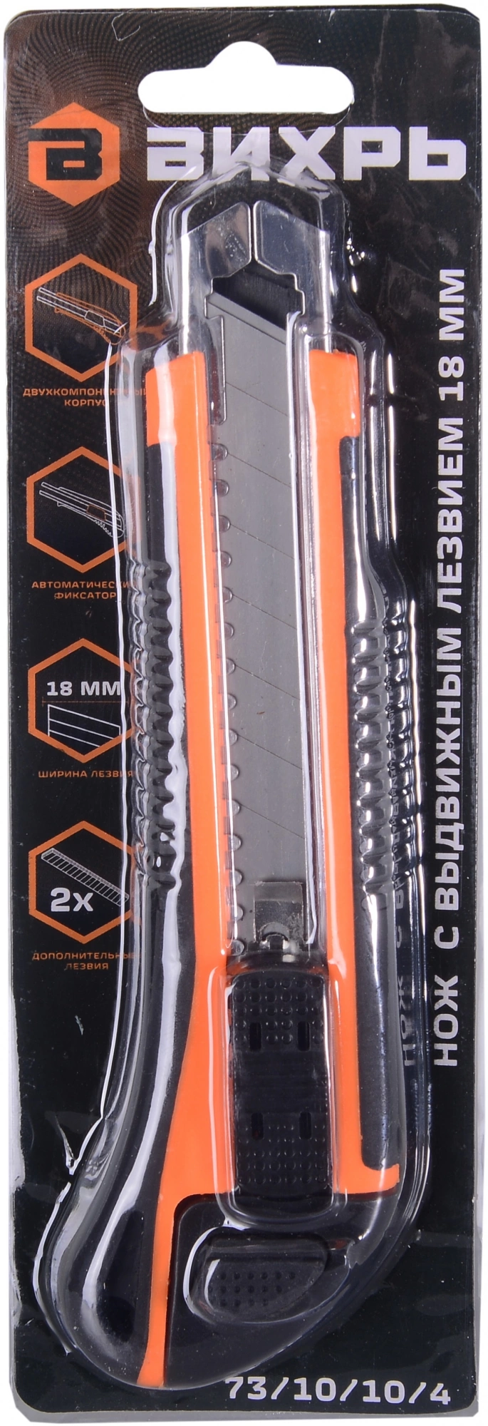 Нож строит. Вихрь 18мм лезв.1шт оранжевый/черный (73/10/10/4)