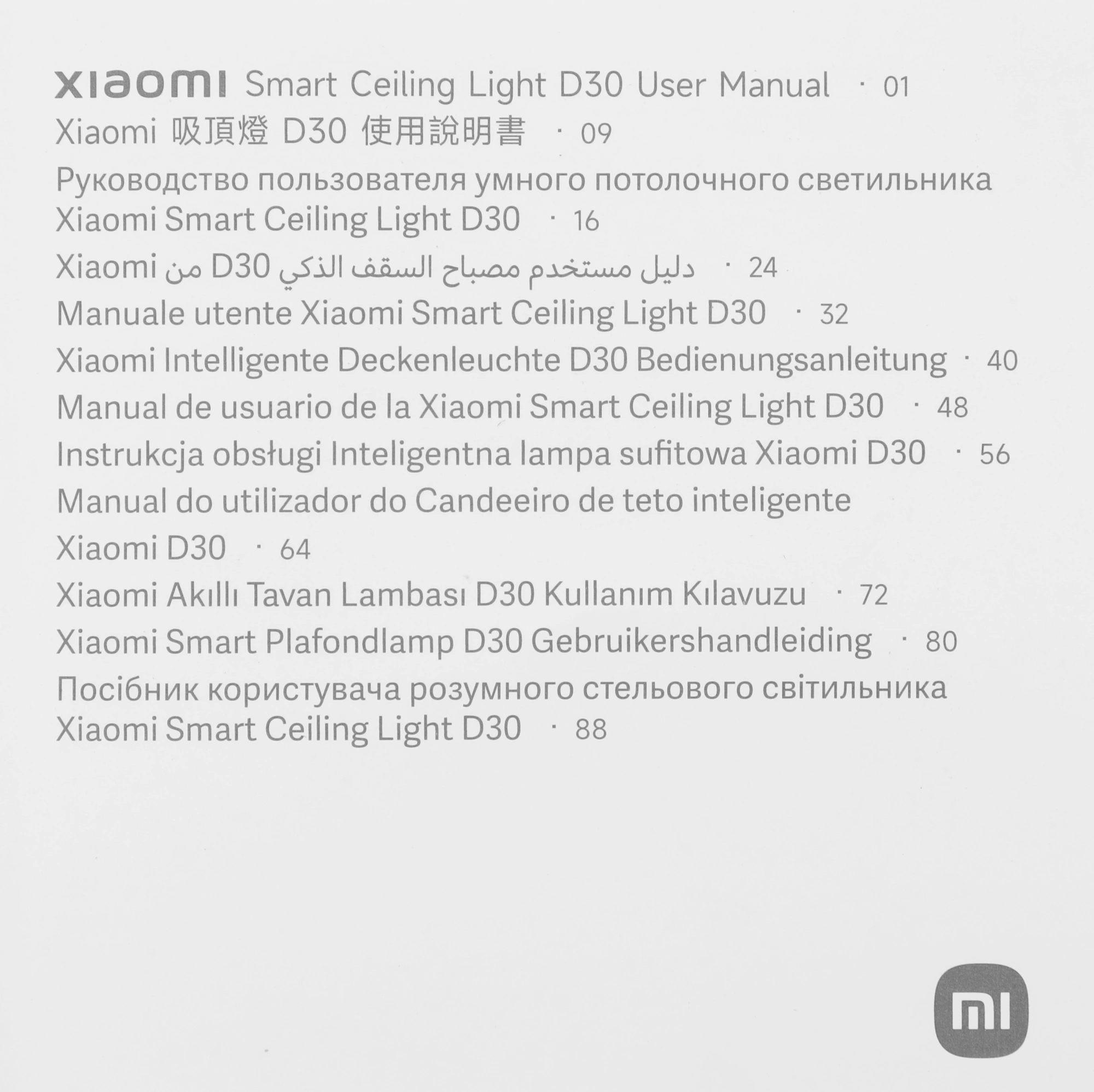 Умный потолочный светильник Xiaomi Smart Ceiling Light D40, 1 шт.; установочный винт, 3 шт.; руководство пользователя, 1 шт.; гарантийный талон, 1 шт.