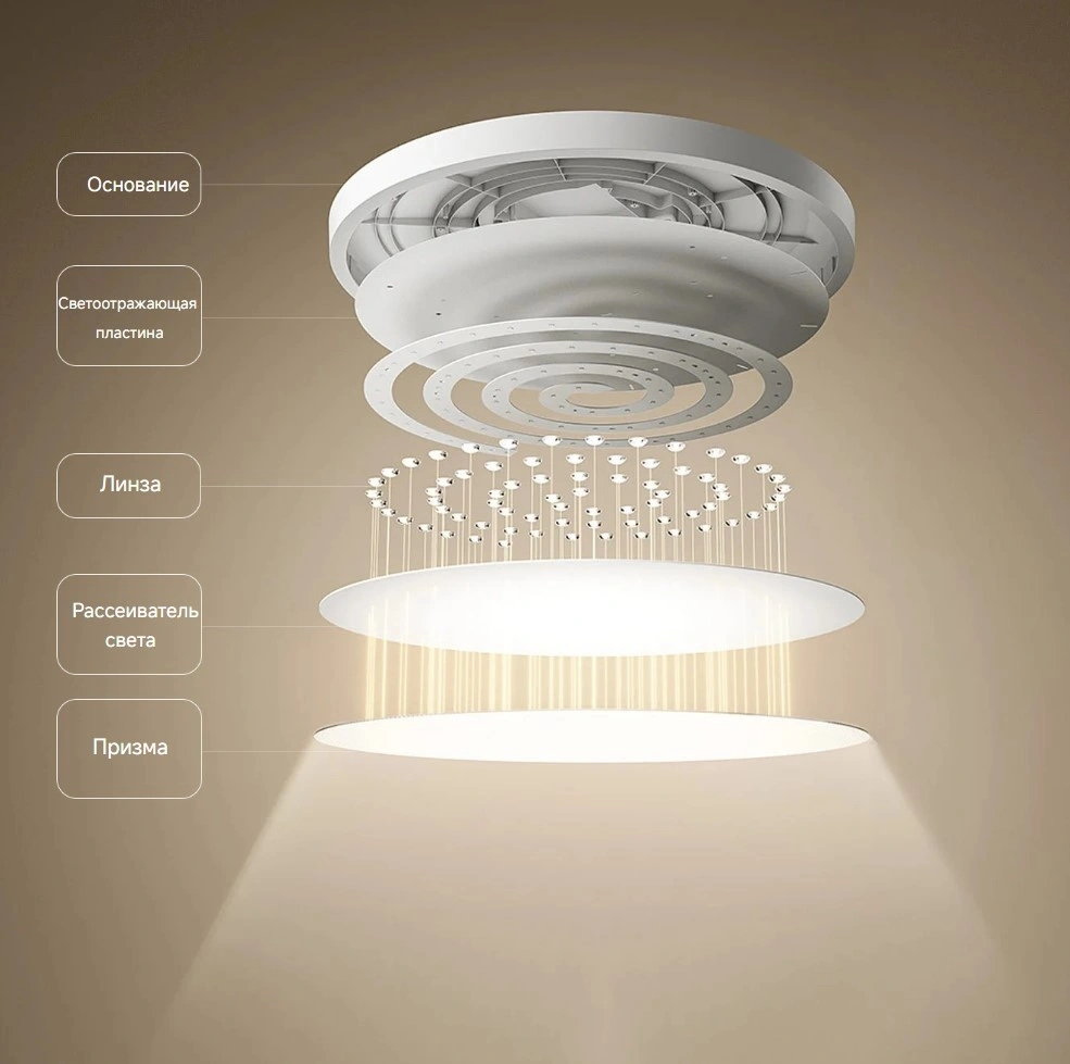 Умный светильник предназначен для установки в таких помещениях, как гостиная, кухня или спальня. Разрешается установка только на бетонный потолок.