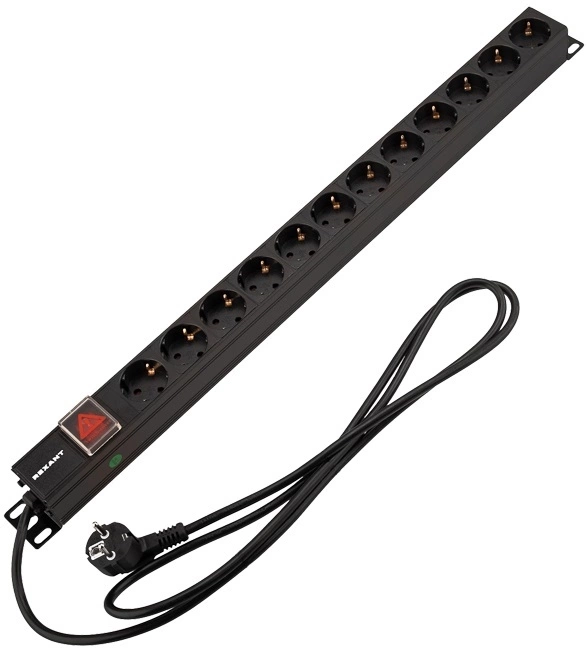 Блок распределения питания Rexant 04-0204-2 верт.размещ. 12xSchuko базовые 16A Schuko 2м