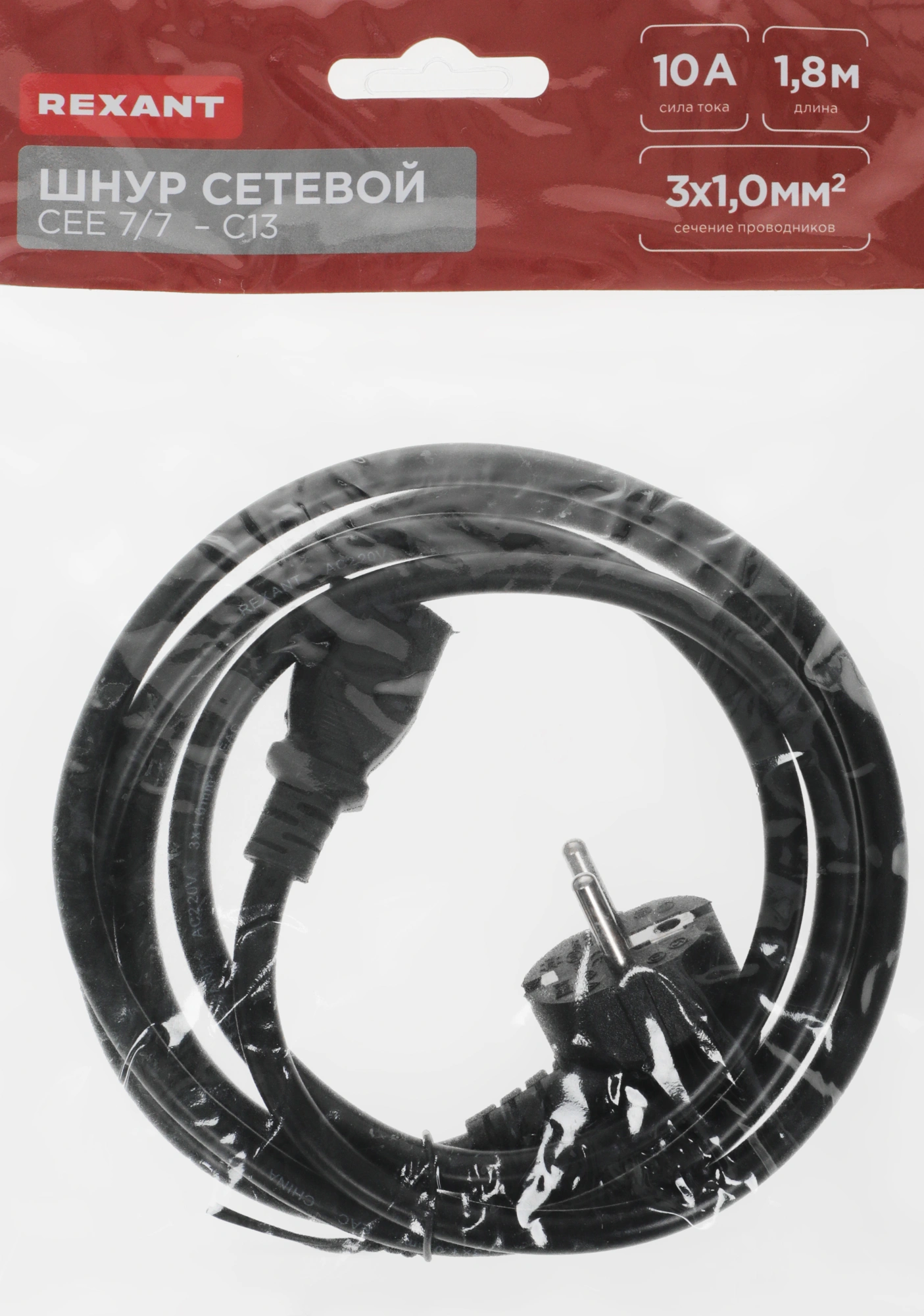 Schuko-C13 проводник.:3x1мм2 1.8м 220В черный
