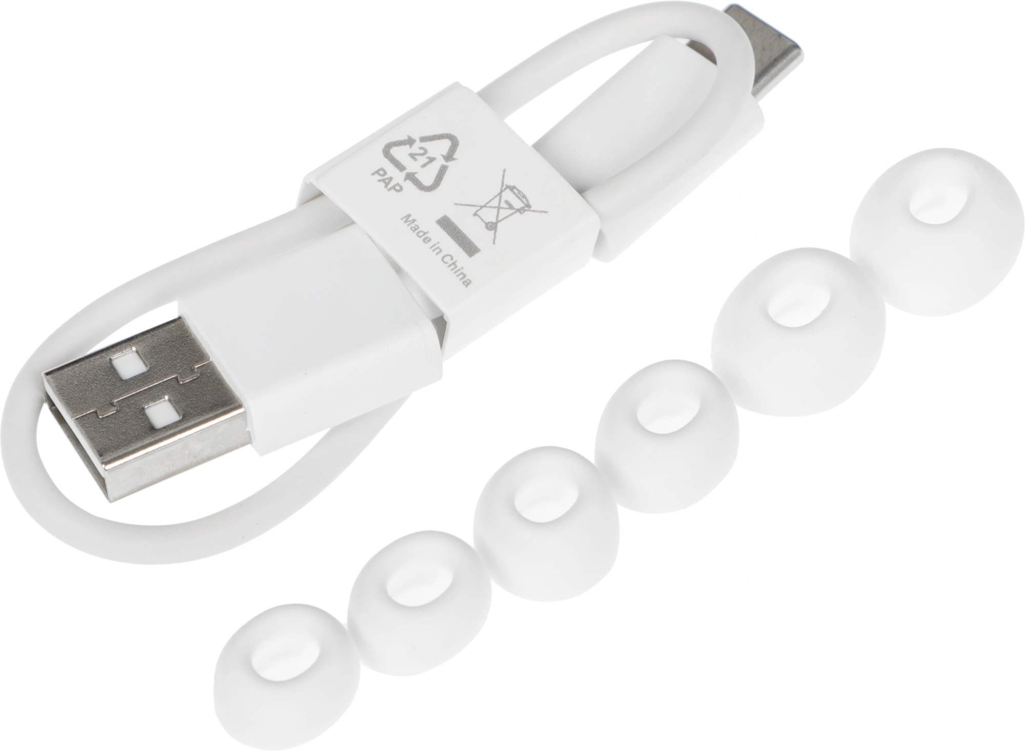 Наушники, зарядный кейс, кабель для зарядки, документация