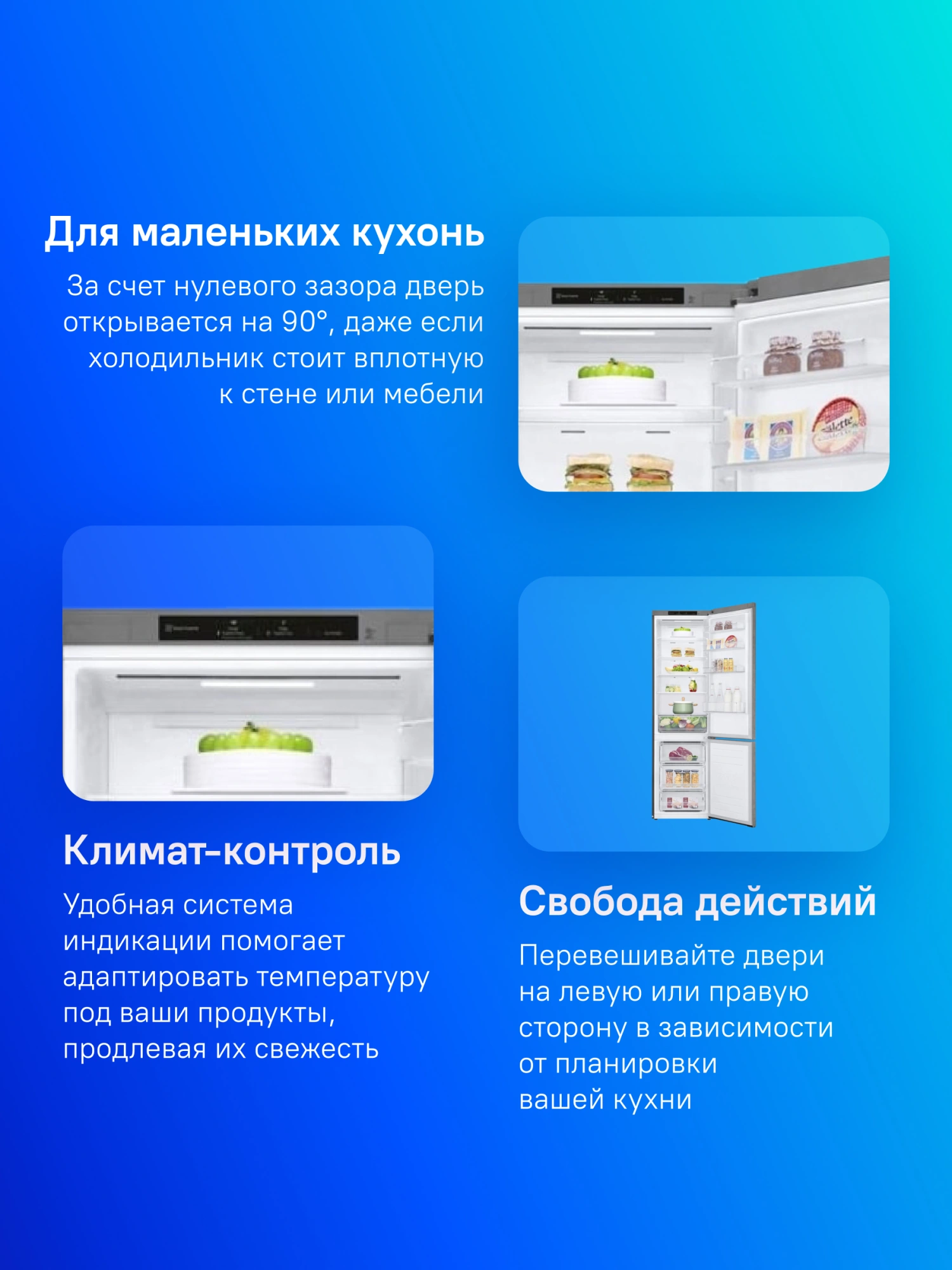 LED подсветка, антибактериальный уплотнитель дверей, дисплей, защита от отпечатков пальцев, система самодиагностики