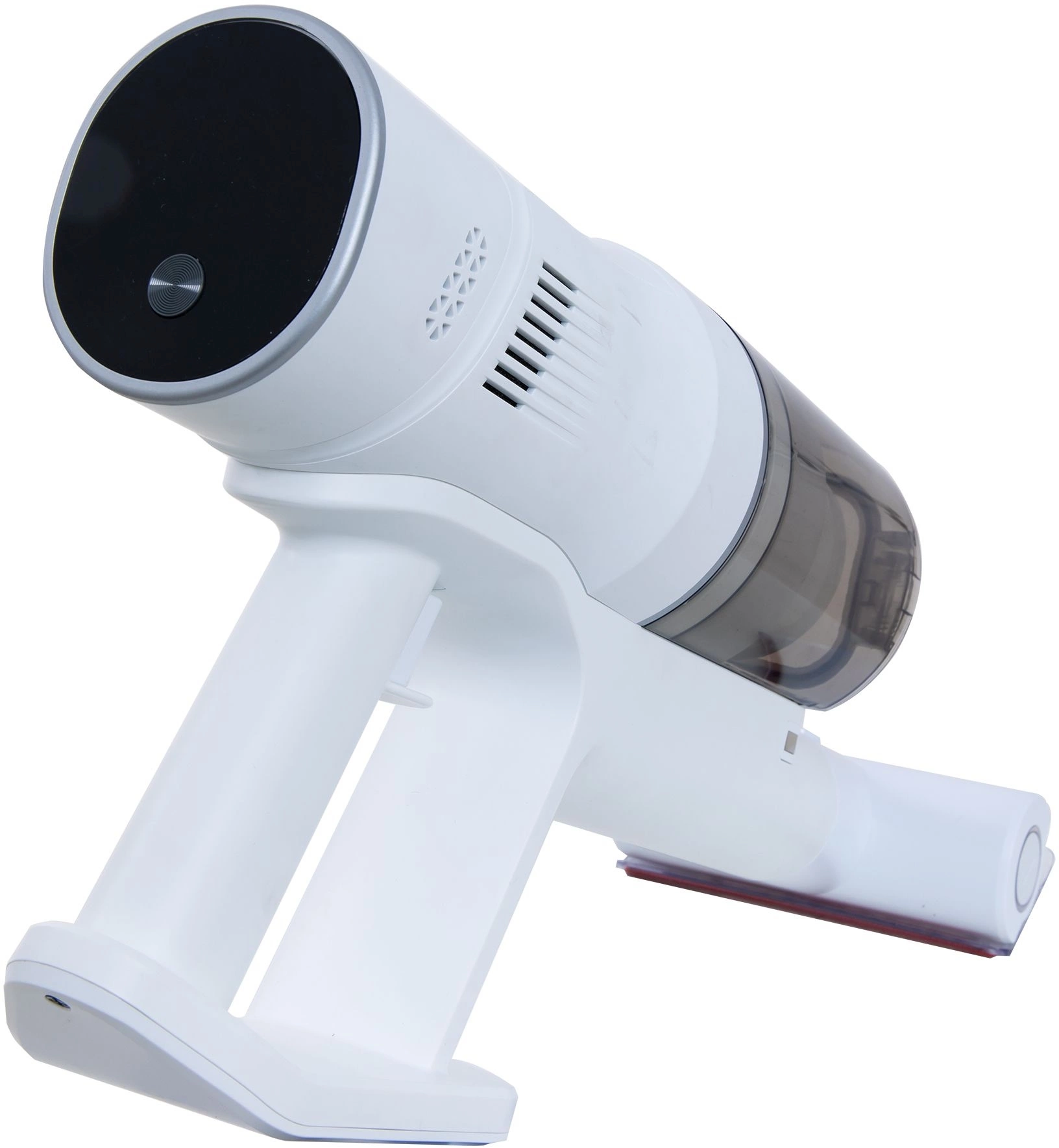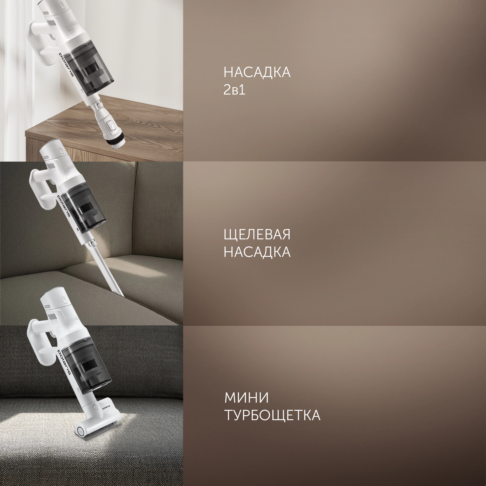 LED-дисплей, легко очищаемый пылесборник, место для хранения насадок, напольная подставка, подсветка зоны уборки