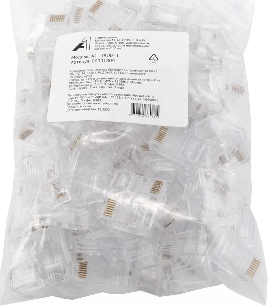 кат.5E RJ45 прозрачный (упак.:100шт)