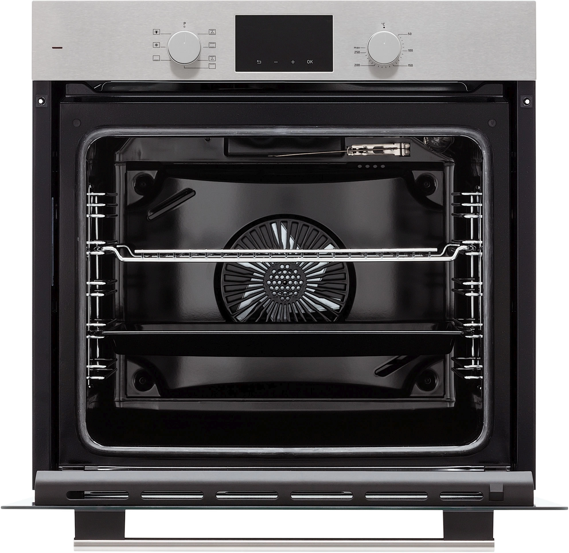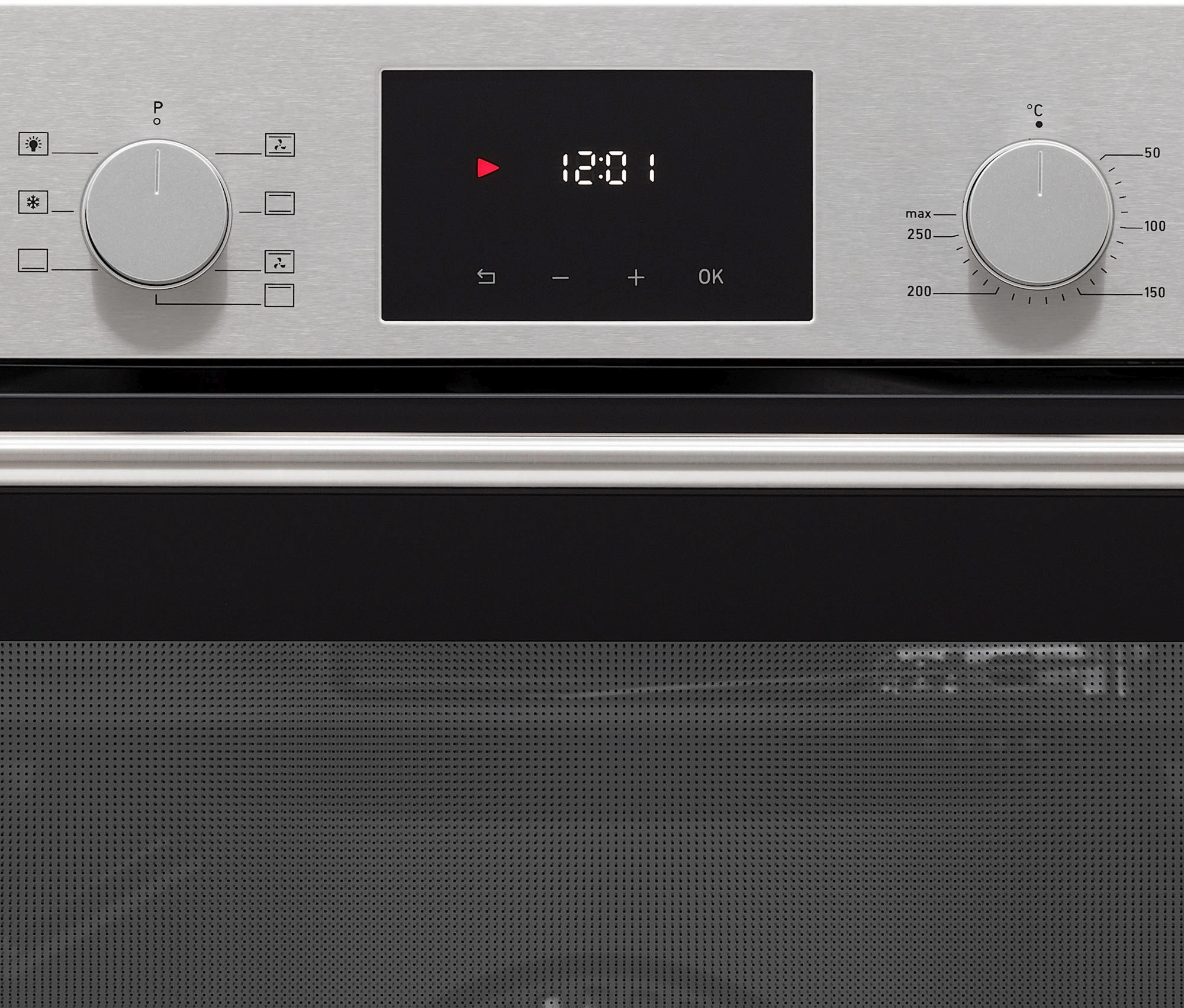 дисплей, полностью стеклянная внутренняя поверхность дверцы духовки, утапливаемые переключатели
