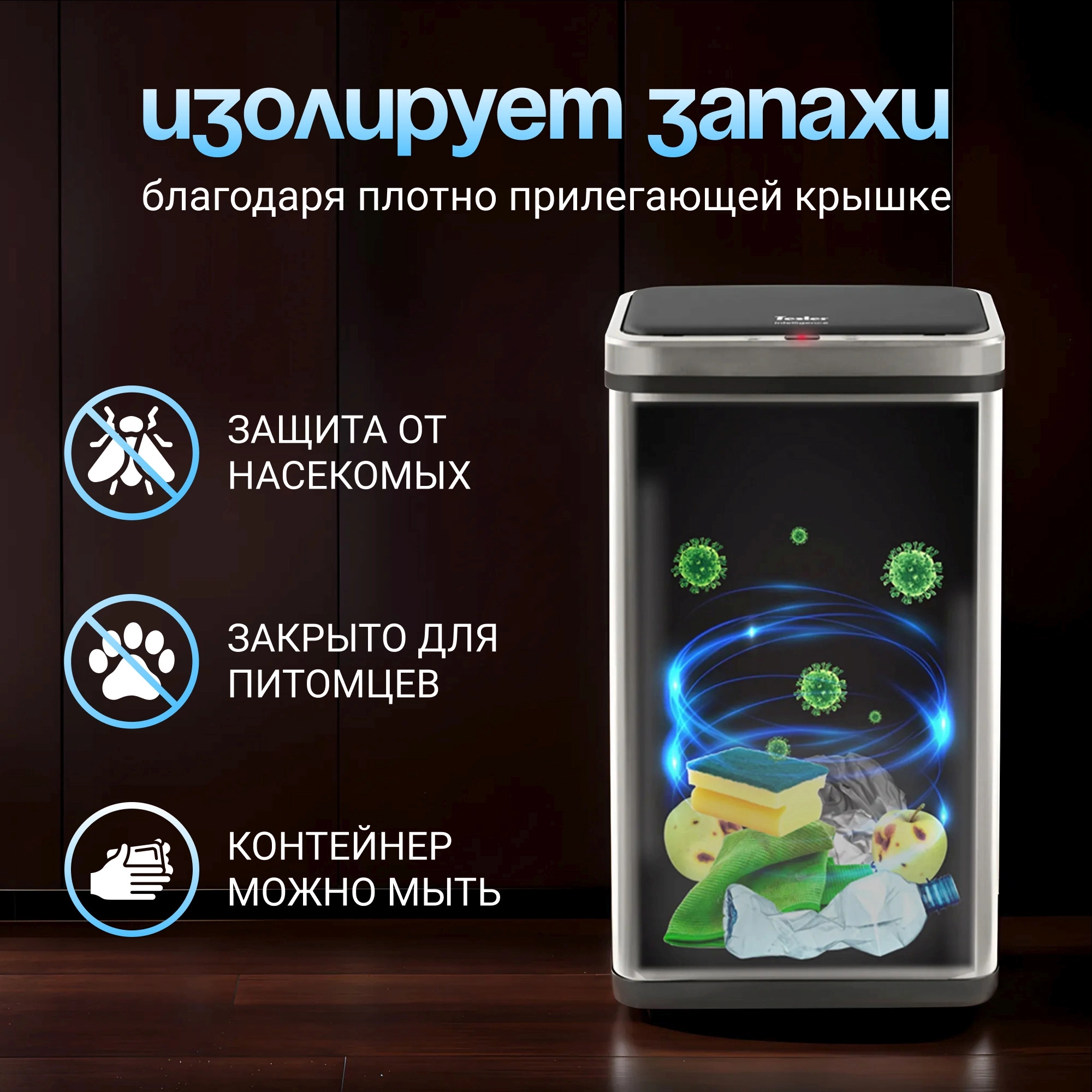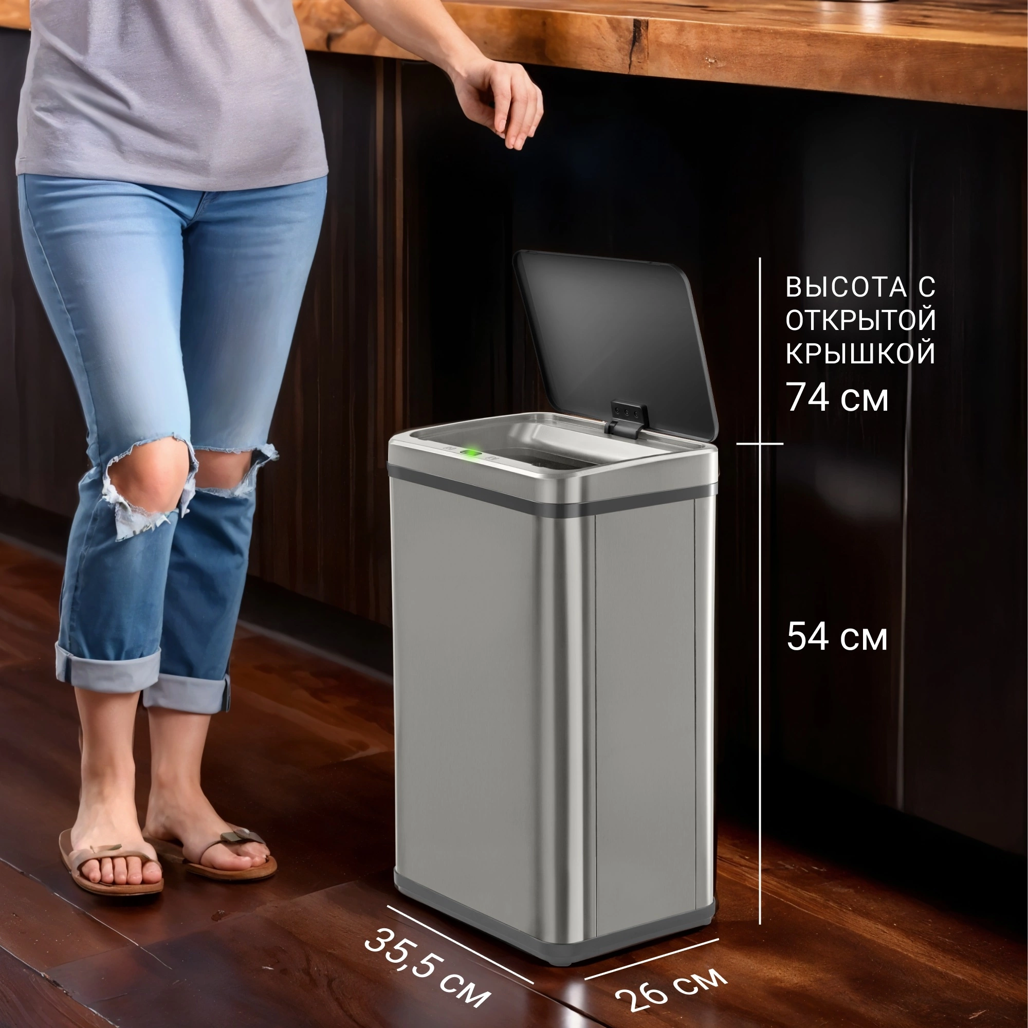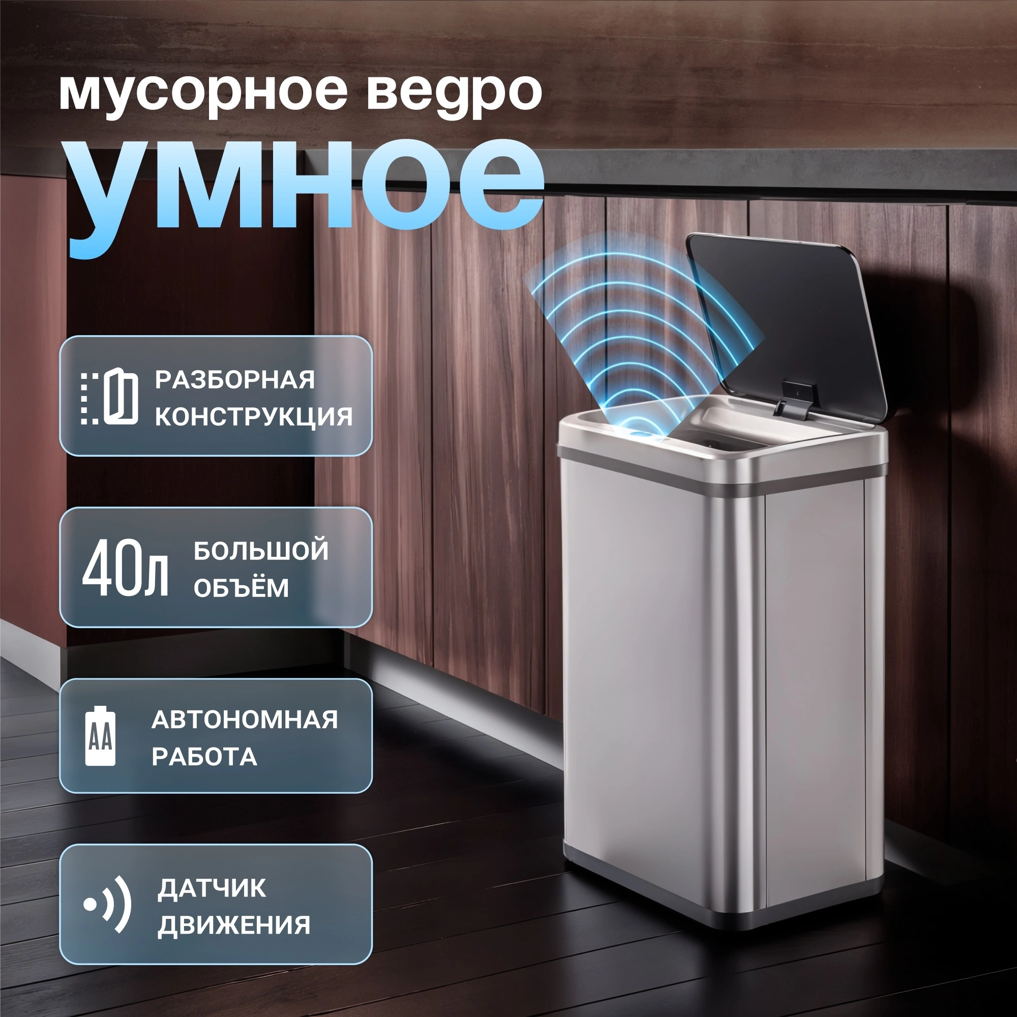 прямоуг. 40л. пластик сенсорн.кр. серый
