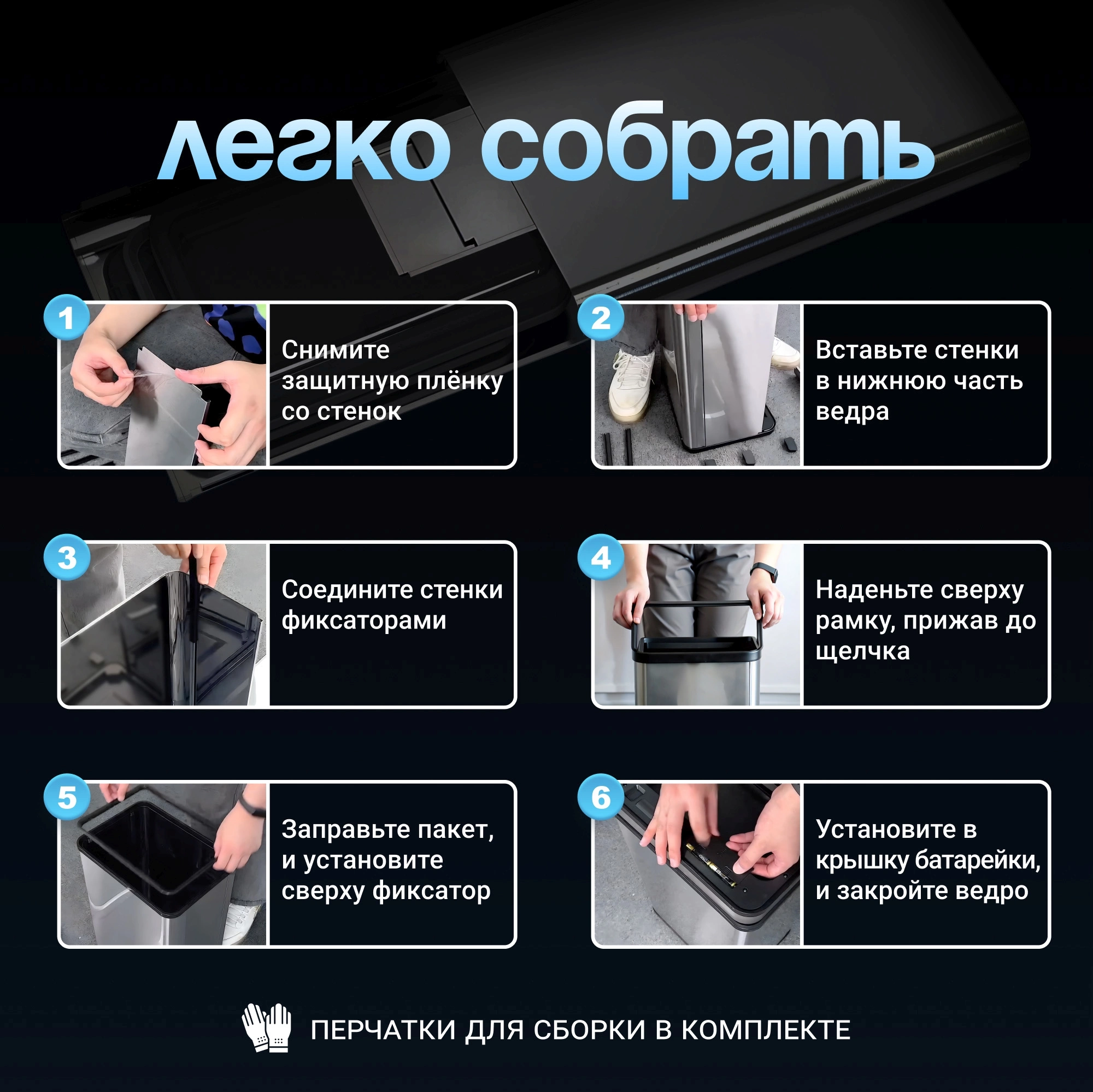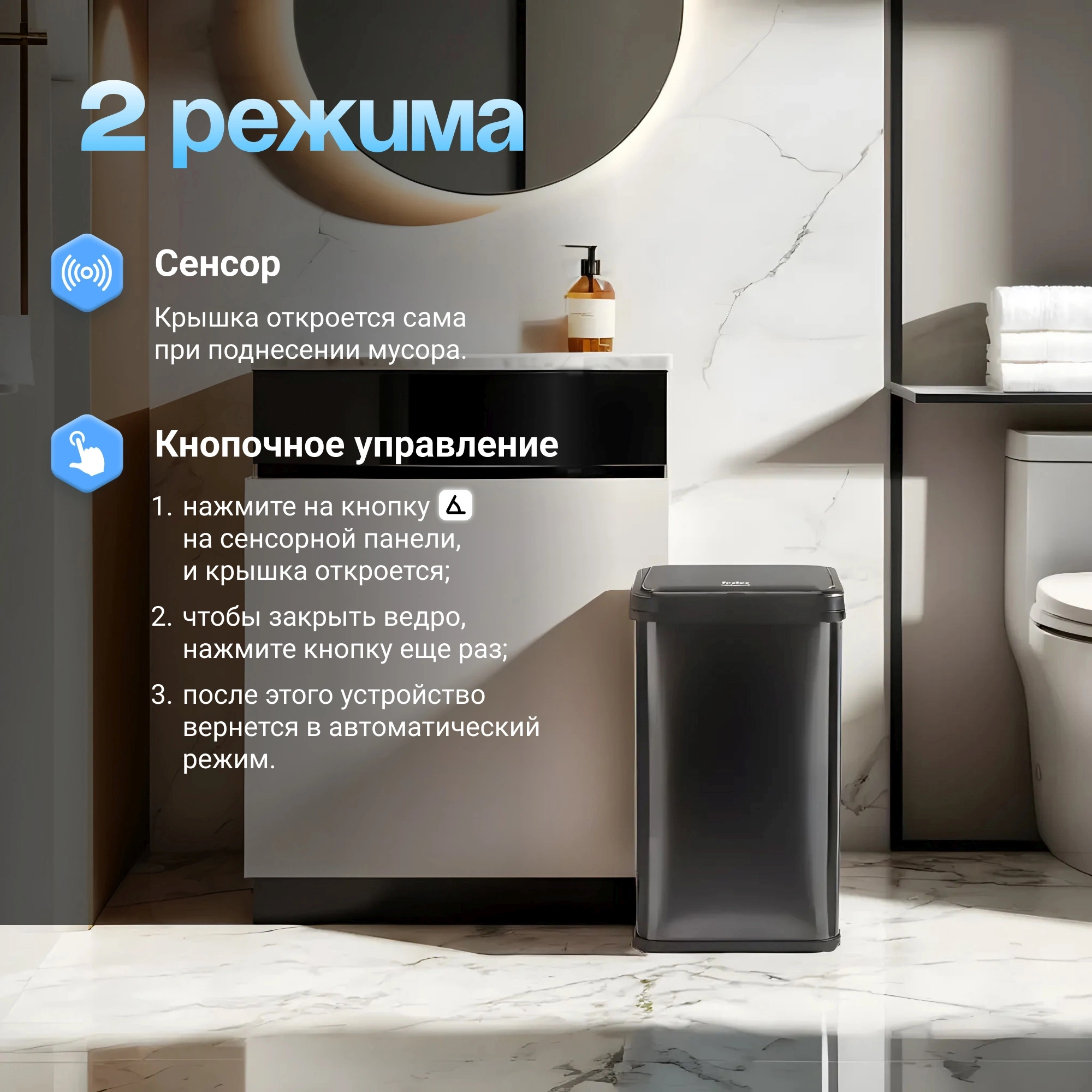 BLACK прямоуг. 50л. пластик сенсорн.кр. черный