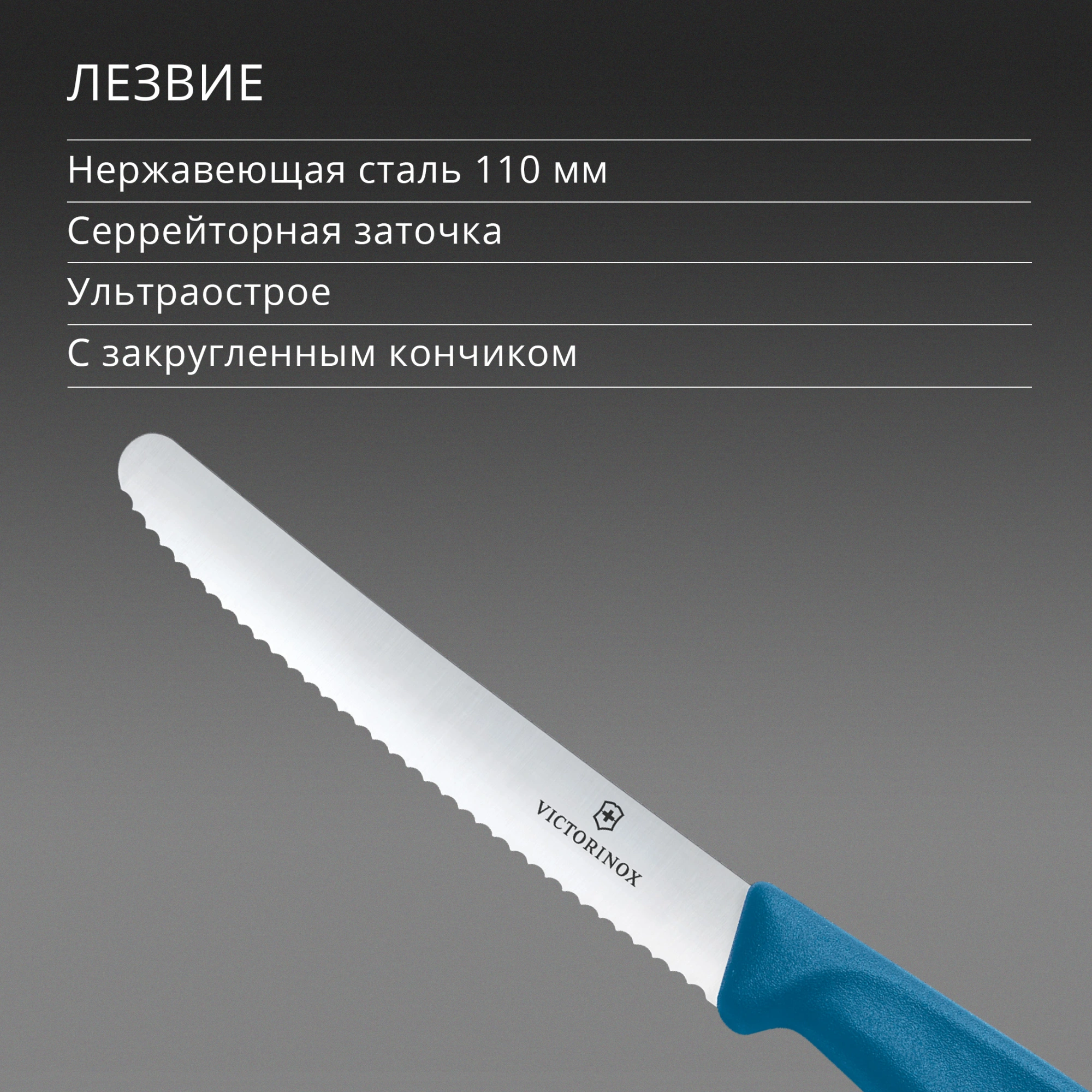 стальной столовый лезв.110мм серрейт. заточка сини...