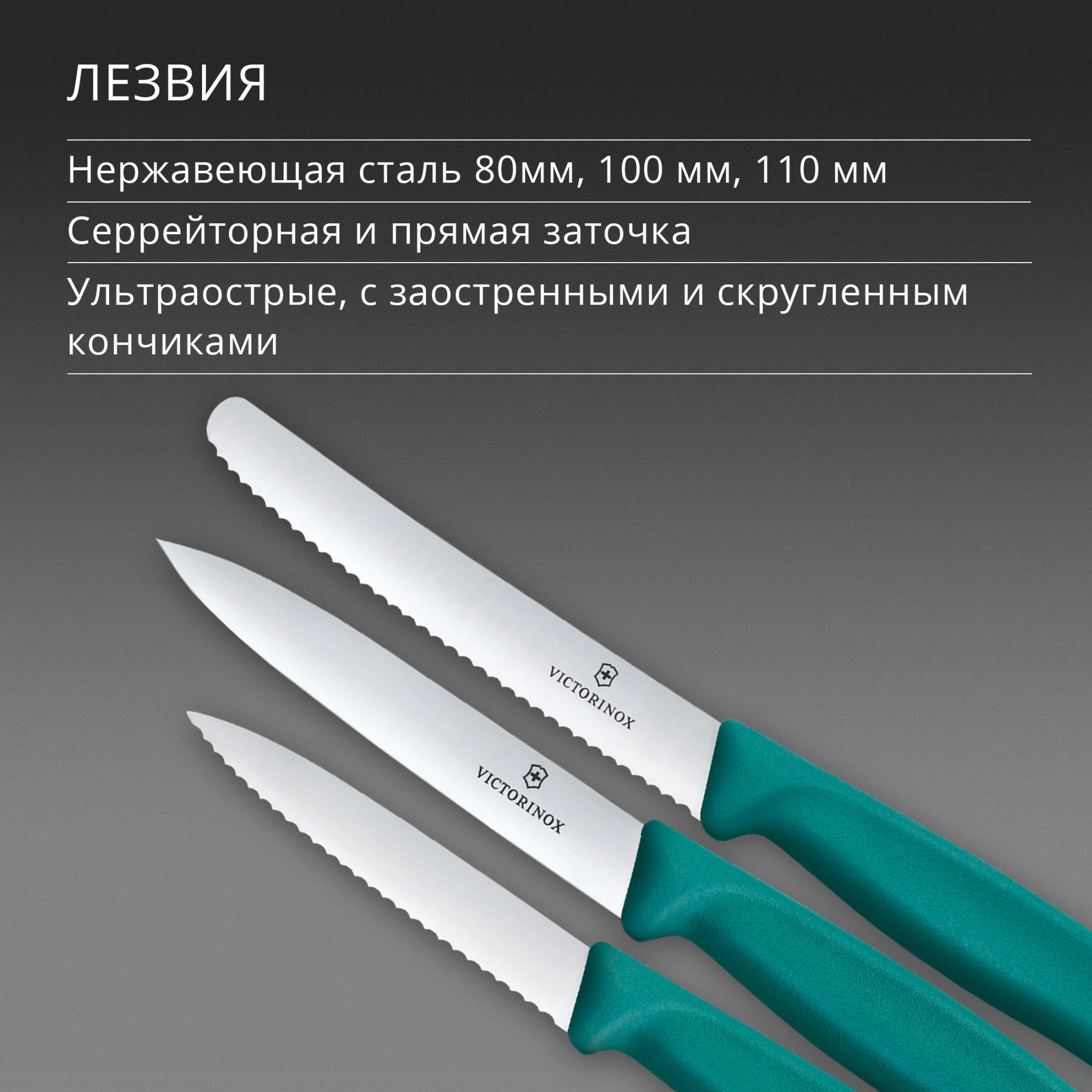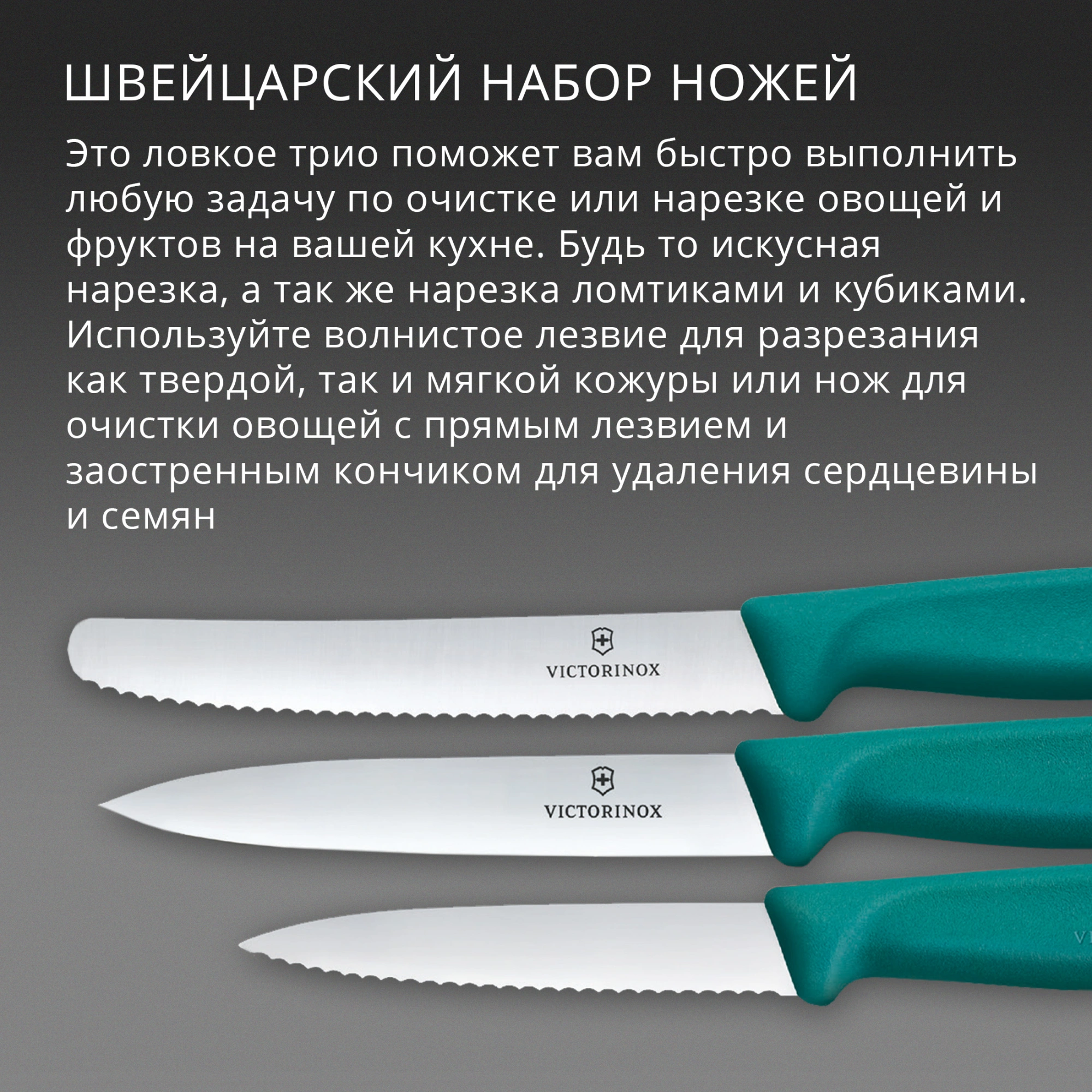 Это ловкое трио поможет вам быстро выполнить любую задачу по чистке или нарезке овощей и фруктов на вашей кухне. Будь то искусная нарезка, а так же нарезка ломтиками и кубиками. Используйте волнистое лезвие для разрезания как твердой, так и мягкой кожуры или нож для очистки овощей с прямым лезвием и заостренным кончиком для удаления сердцевины и семян.