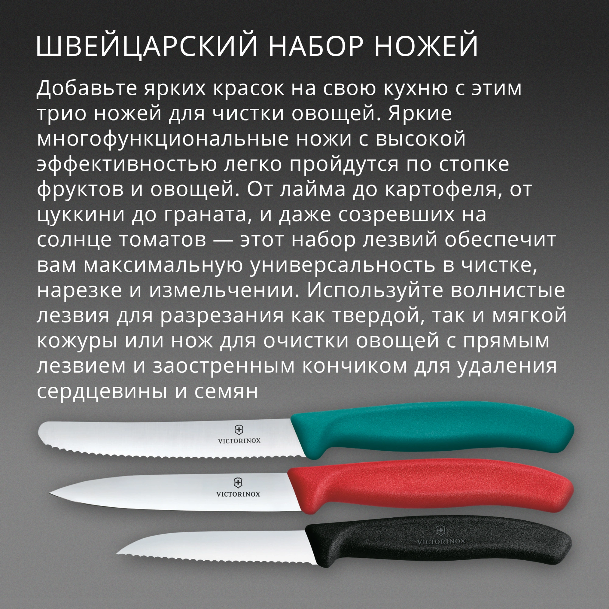 Швейцарские ножи для чистки овощей и фруктов в свежих и ярких цветах