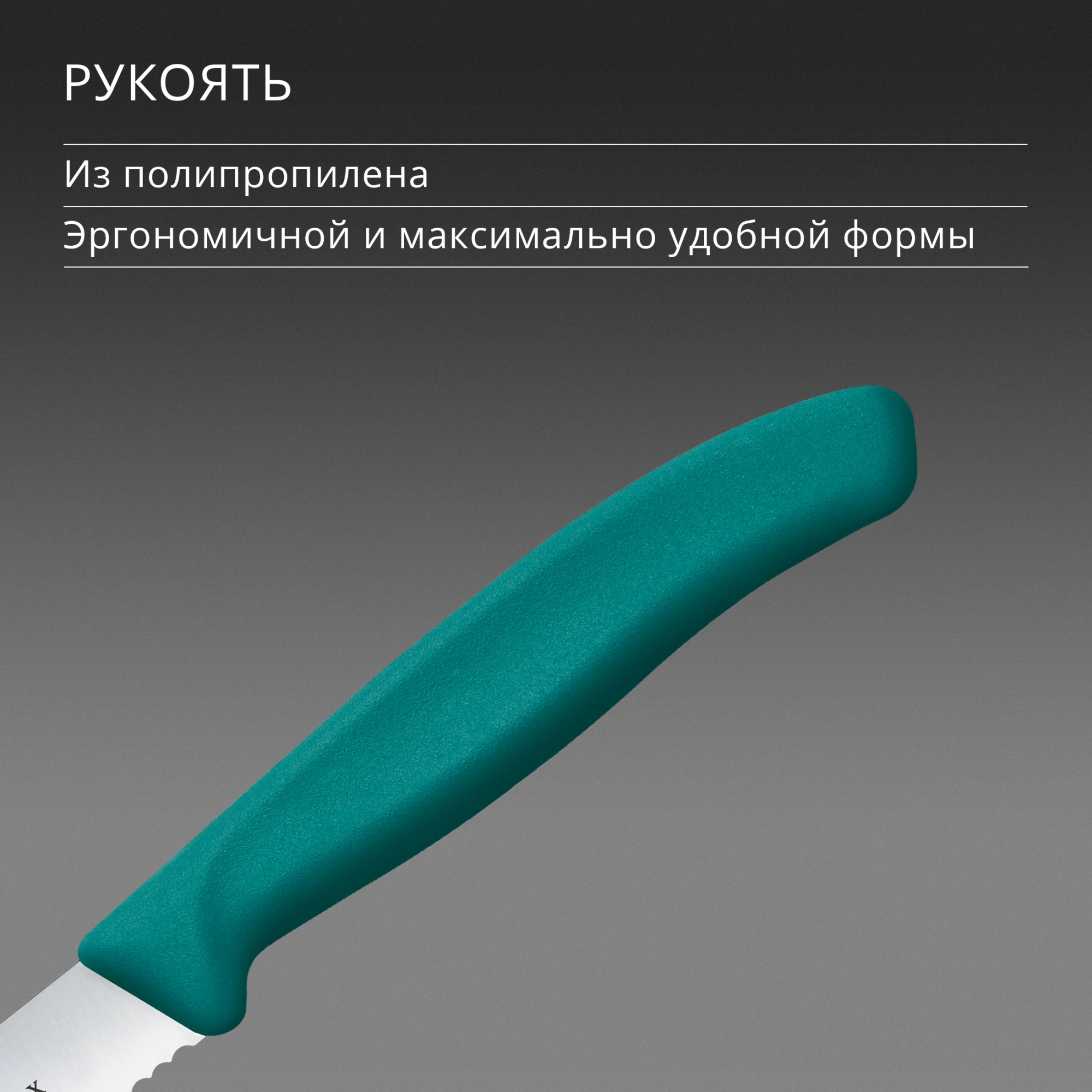 Нож с ультраострой волнистой кромкой, скругленным кончиком и эргономичной ручкой.