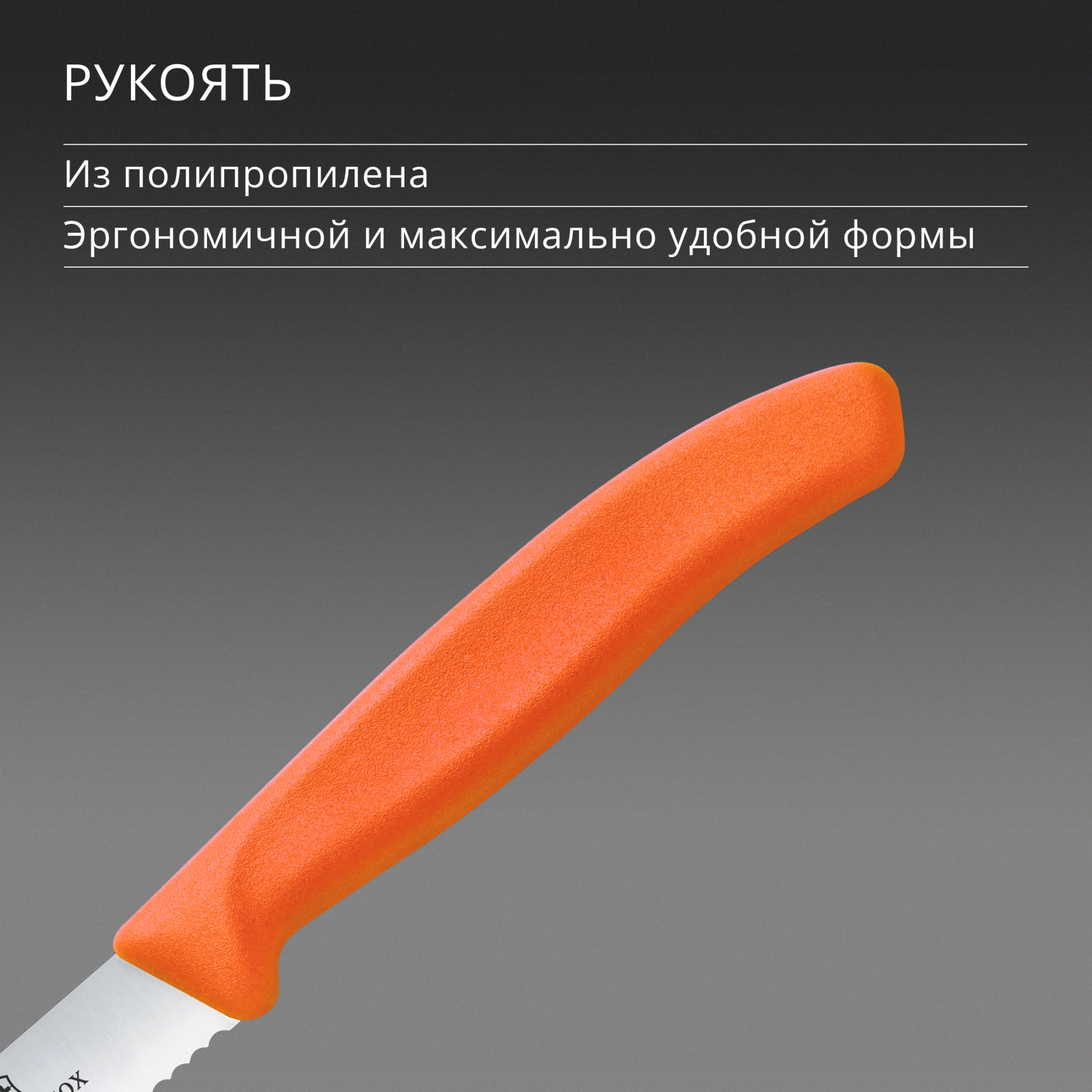 Нож с ультраострой волнистой кромкой, скругленным кончиком и эргономичной ручкой.