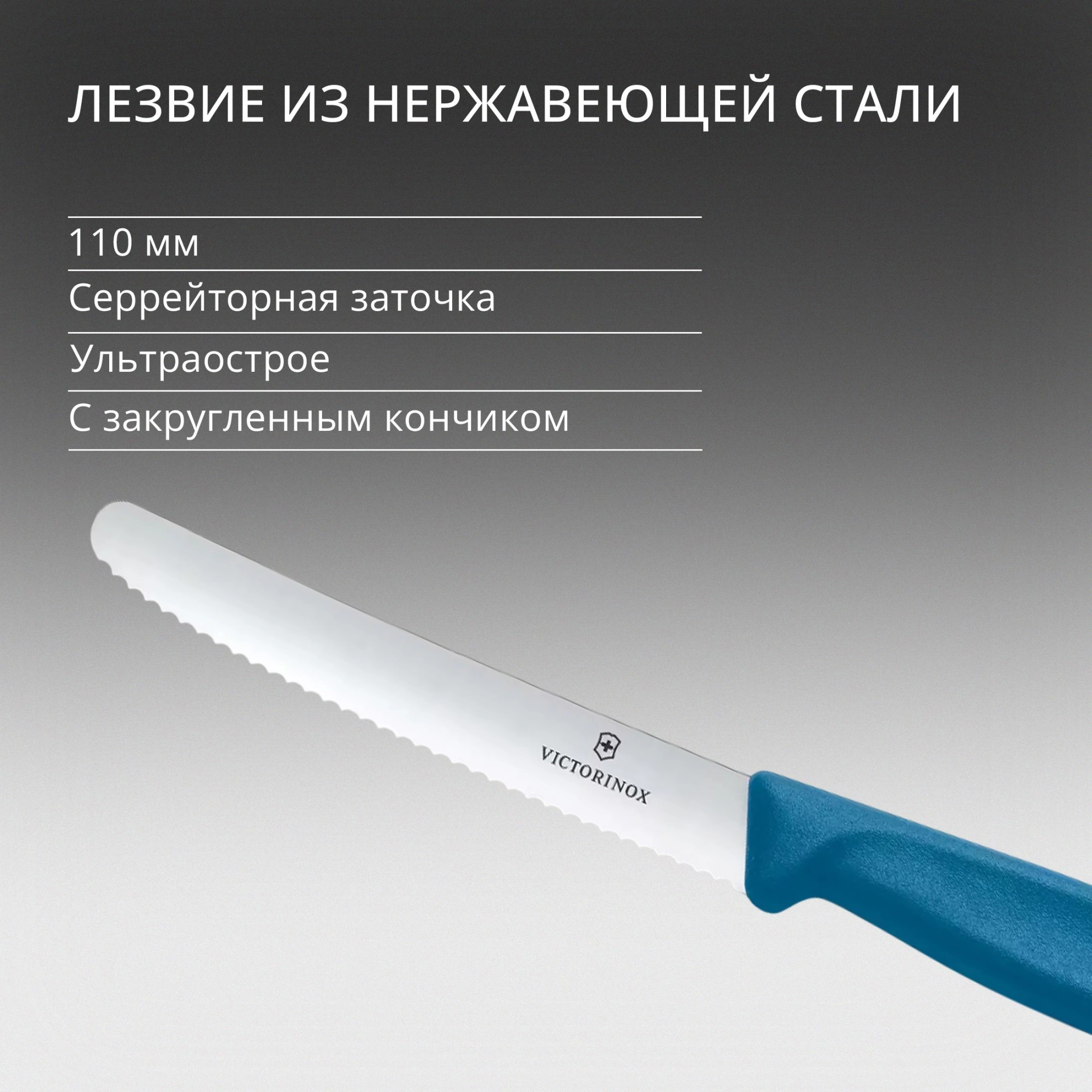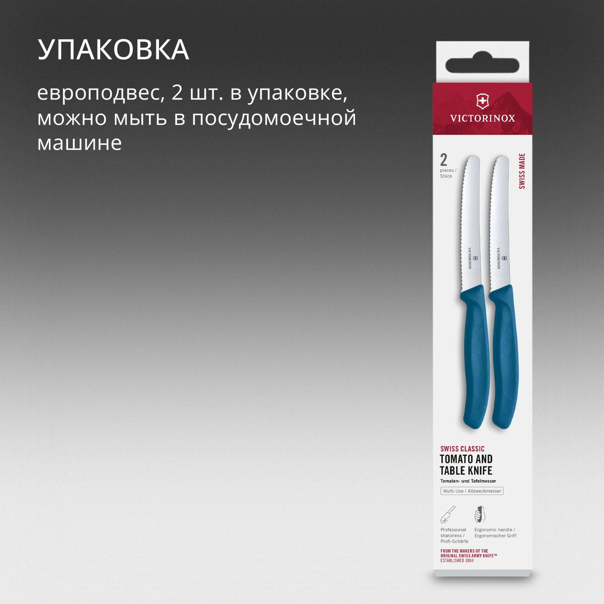 Этот набор столовых/для томатов ножей оснащен профессиональными из нержавеющей стали, острыми с волнистой кромкой лезвиями. Идеально подходит для широкого спектра точных задач по подготовке продуктов и обеспечивает идеальную нарезку. Лёгкие, эргономичные ручки обеспечивают максимальный комфорт и контроль. Изготовленные в Швейцарии и пригодные для мытья в посудомоечной машине, ножи надёжны и эффективны для ежедневного использования на кухне.