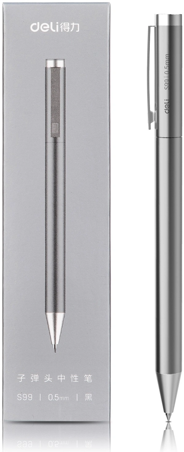Ручка гелев. автоматическая Deli (S99 SILVER) серебристый d=0.5мм черн. черн. подар.кор.