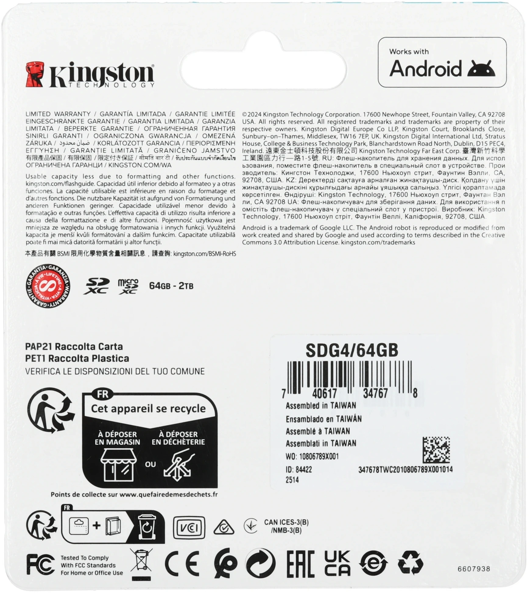 Флеш карта SDXC 64GB Kingston SDG4/64GB