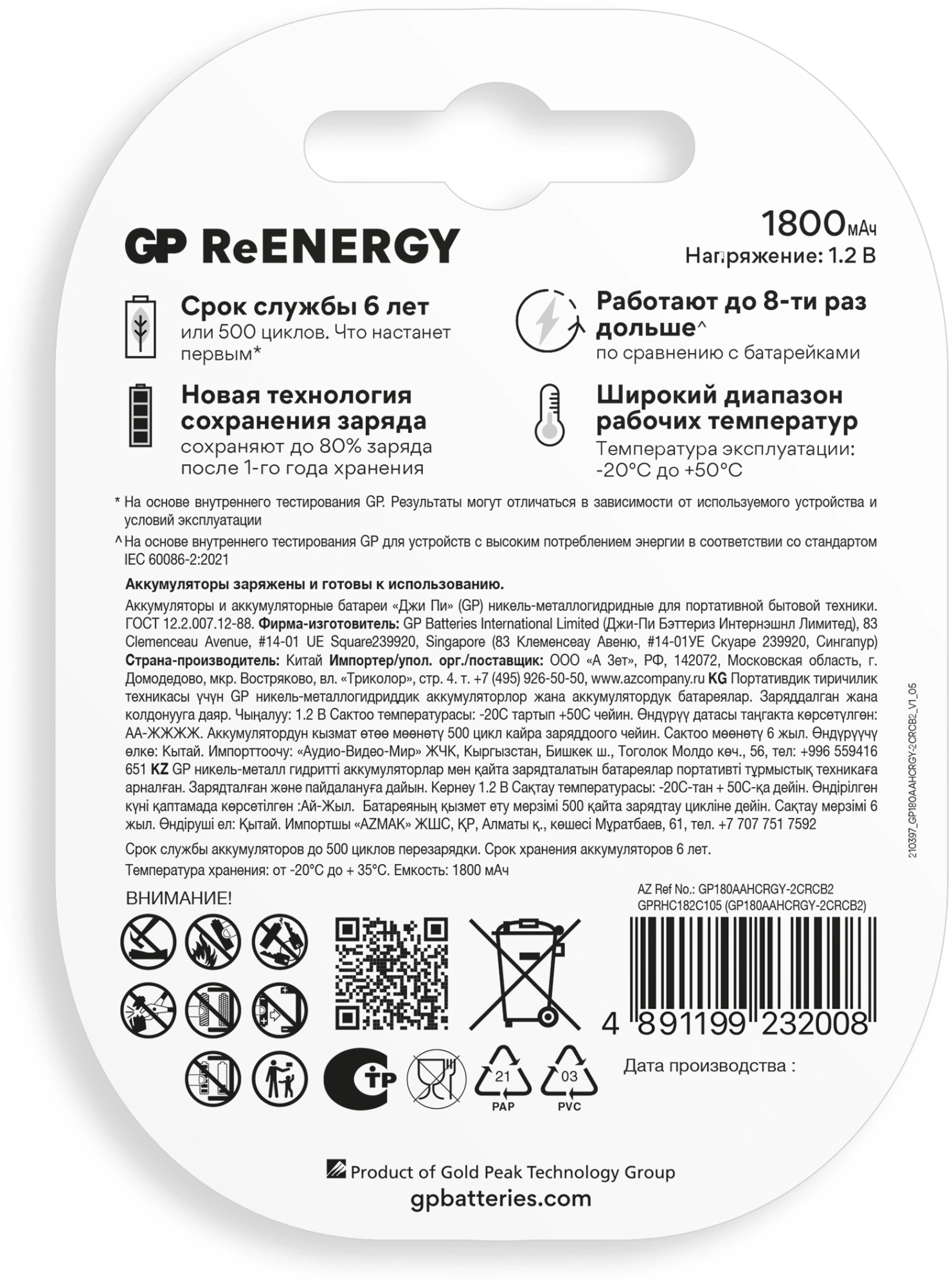 Аккумулятор GP 180AAHCRGY-2CRCB2