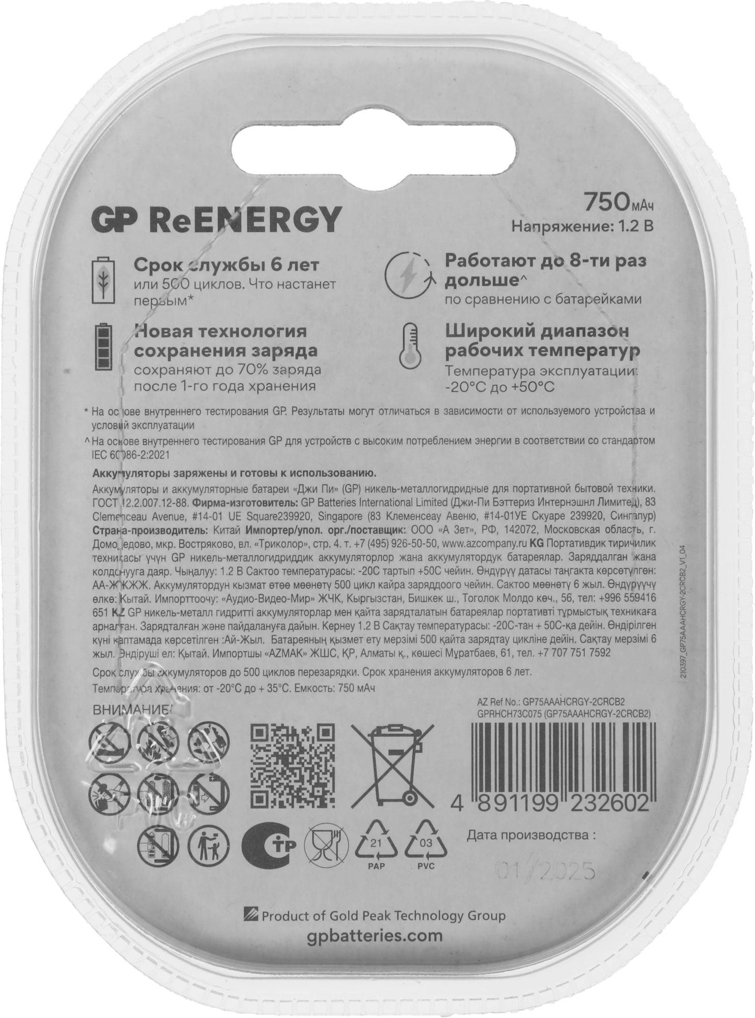 Аккумулятор GP 75AAAHCRGY-2CRCB2