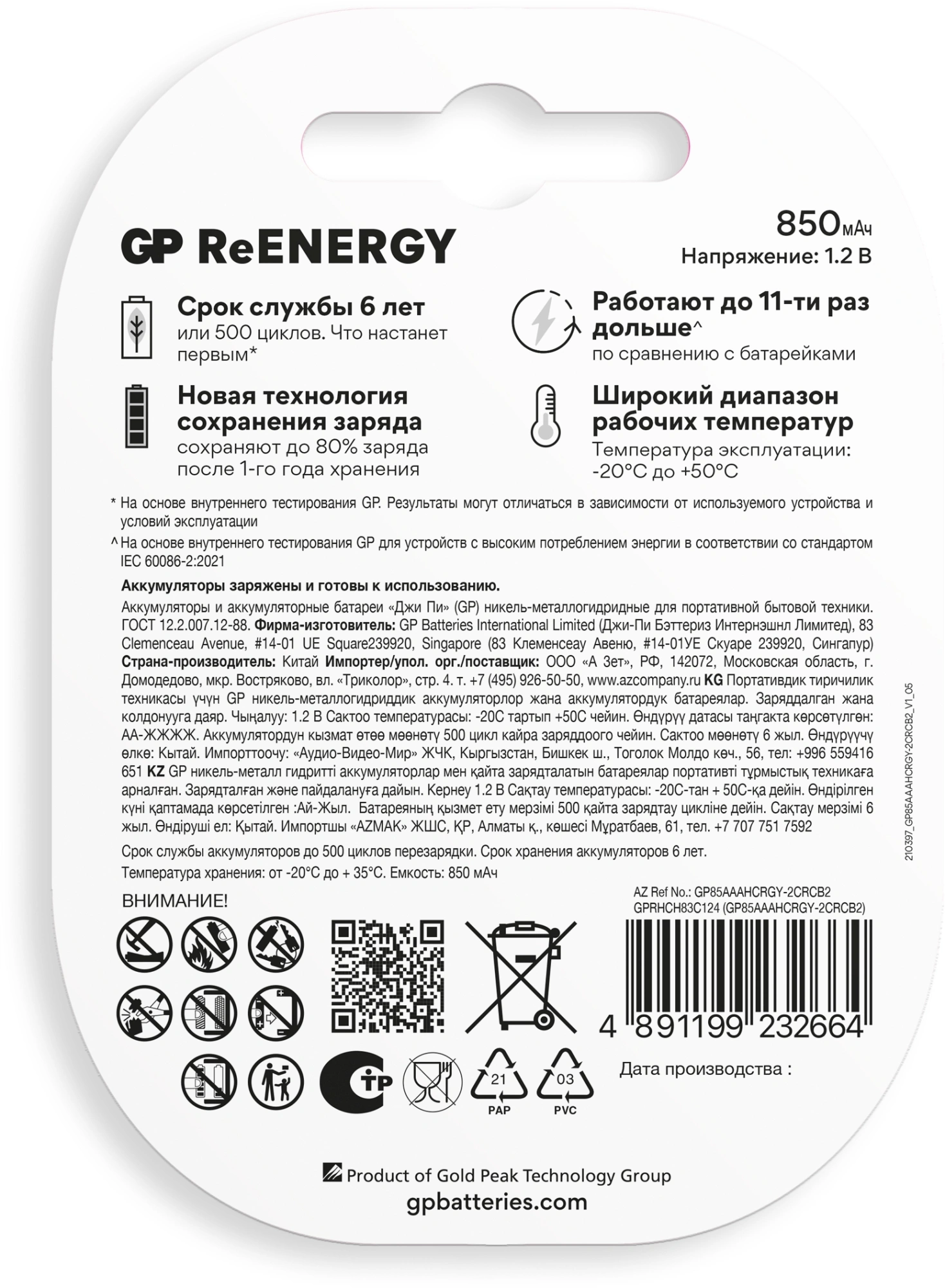 AAA NiMH 850mAh (2шт)