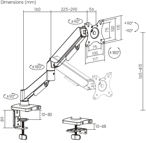 черный 17"-32" макс.9кг крепление к столешнице пов...