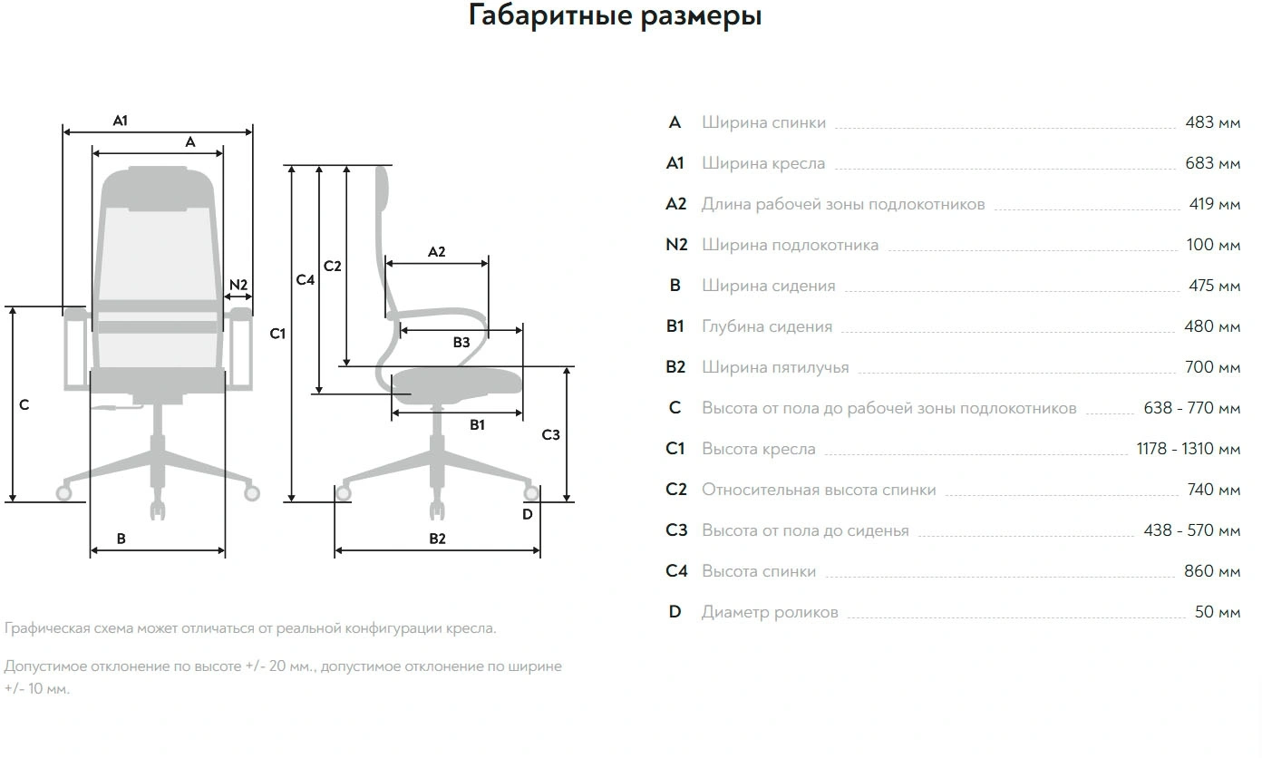 Высота с подлокотниками MIN