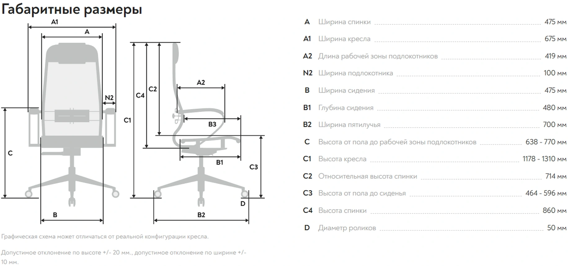 высоты (газлифт), высоты сиденья (без спинки), поясничной области