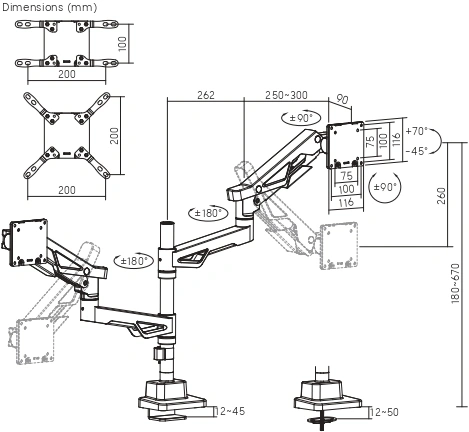 черный/белый 24"-57" макс.27кг крепление к столешн...