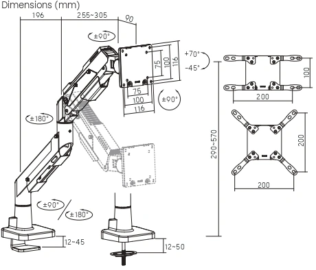 черный/серый 24"-57" макс.30кг крепление к столешн...