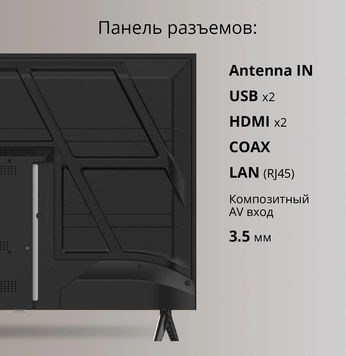 Телевизор, подставка, пульт управления, батарейки ААА - 2 шт., гарантийный талон, инструкция пользователя
