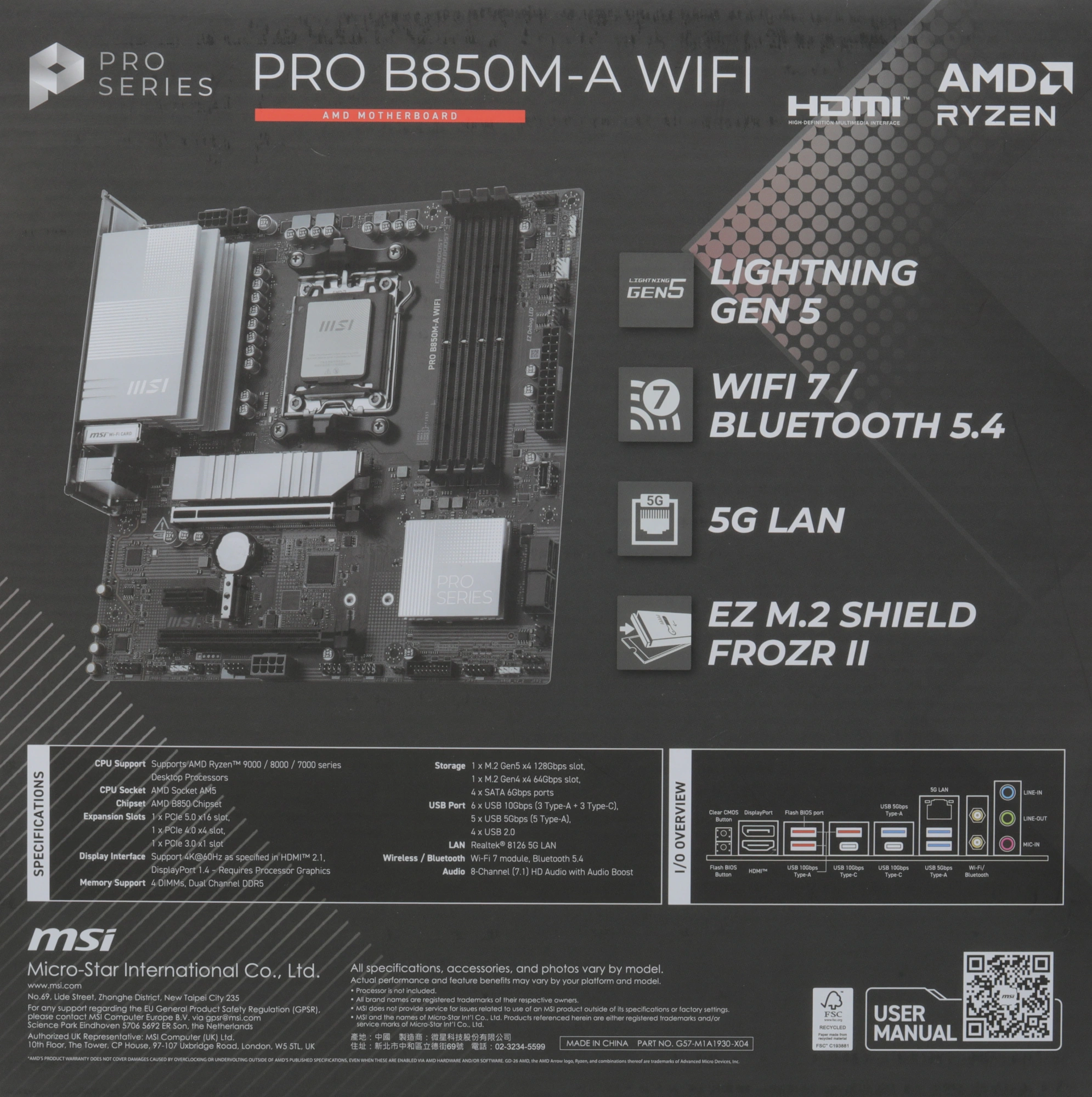 Socket AM5 AMD B850 4xDDR5 mATX AC`97 8ch(7.1) 5Gi...